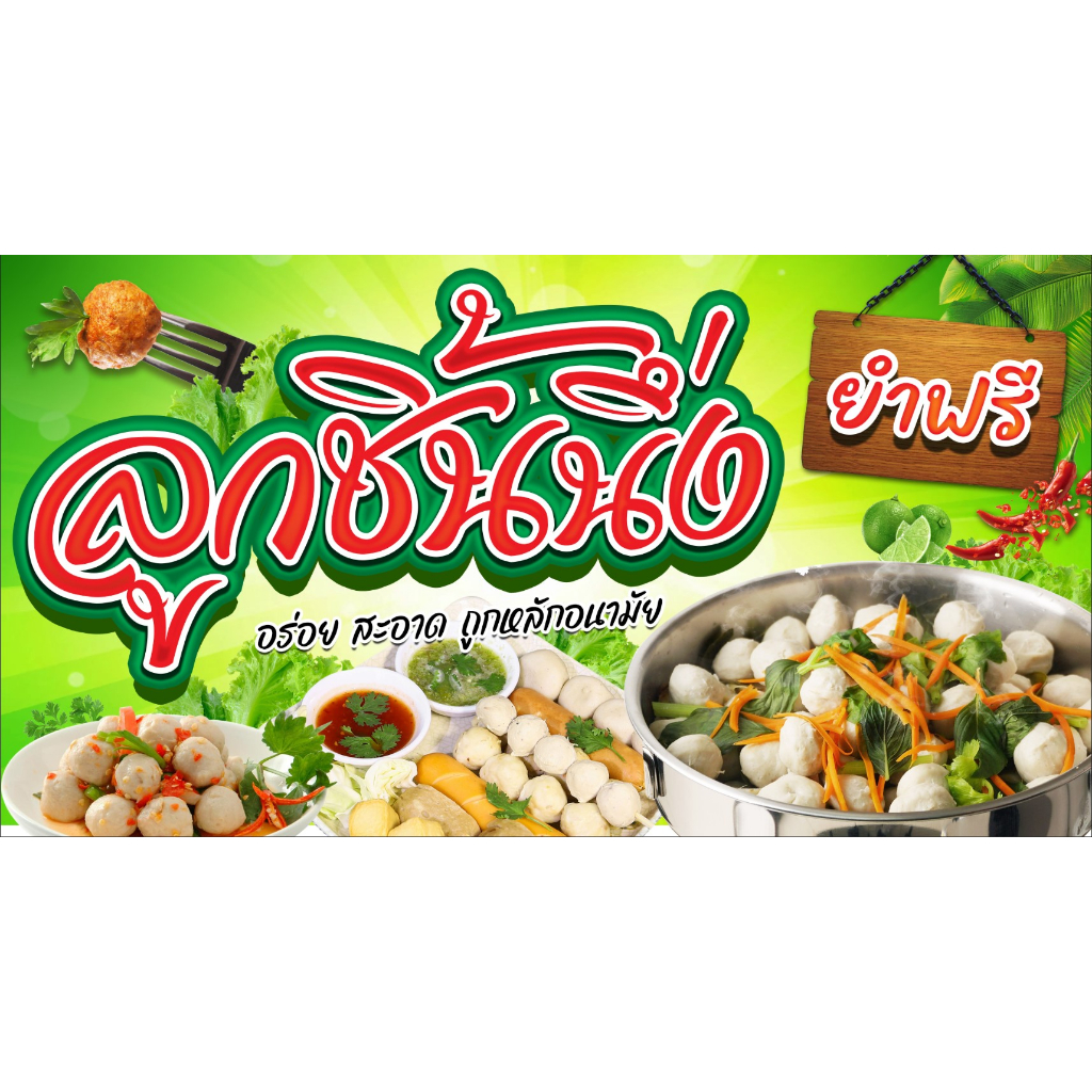 [ส่งไว]ป้ายลูกชิ้นนึ่งยำฟรี ป้ายไวนิลพิมพ์อิงค์เจ็ต คมชัดทุกรายละเอียด สามารถเปลี่ยนขนาดป้ายได้ตามกำหนด แจ้ง inbox