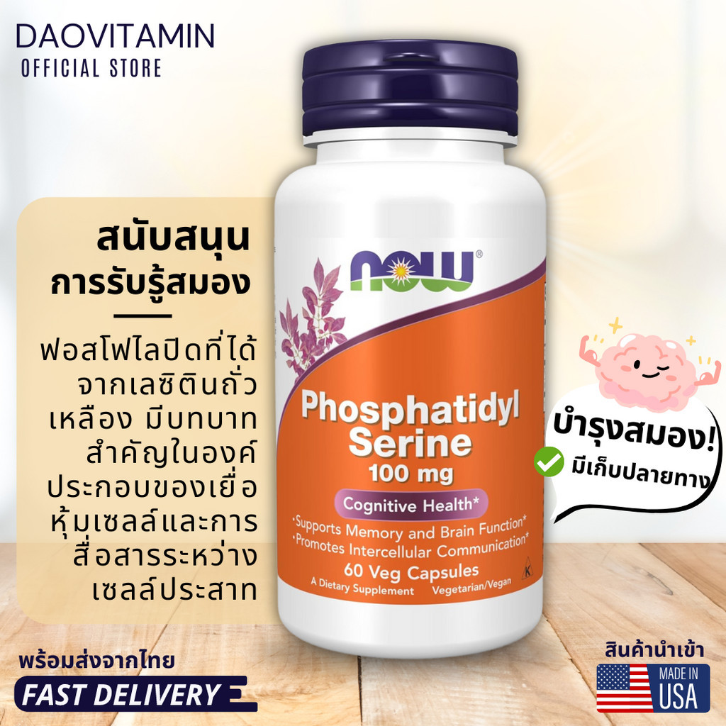 ลอตผลิตใหม่! Exp.03/2027 ส่งไว! NOW Foods, Phosphatidyl Serine, 100 mg 60-120 แคปซูล