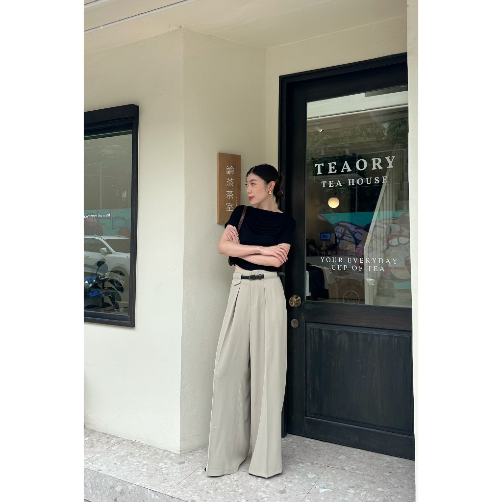 X2 #2019 กางเกงเอวสูงขอบเอวปีน ซิปหน้า ใส่ดีเทลหูเข็มขัดหนา จับจีบหน้า ทรงขากระบอกใหญ่ มาพร้อมเข็มขัดหนังสีน้ำตาล