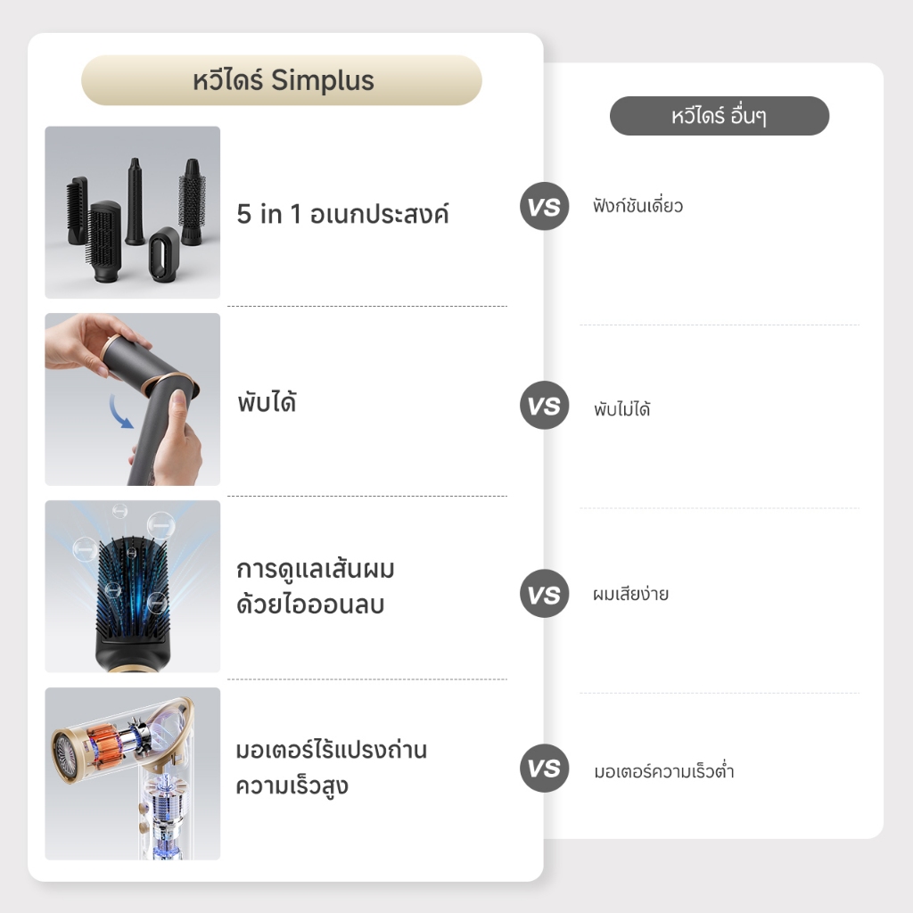 【แท้ระดับพรีเมียม】Simplus ครื่องจัดแต่งทรงผม 5-in-1 MultiStyle 1 ทำความสะอาดอัต โนมัติ ฟังก์ชันสูง RFSH003