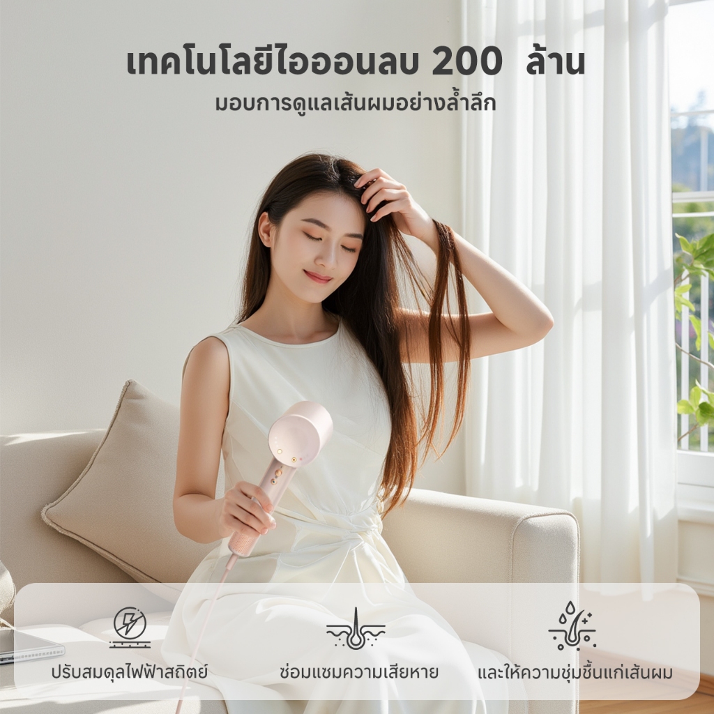 【อัปเกรดใหม่】Simplus Hyper 2 ไดร์เป่าผมความเร็วสูง แห้ง 3 นาที | ไอออนลบเข้มข้น 200 ล้าน | โหมดดูแลเส้นผม 1600W CFJH010