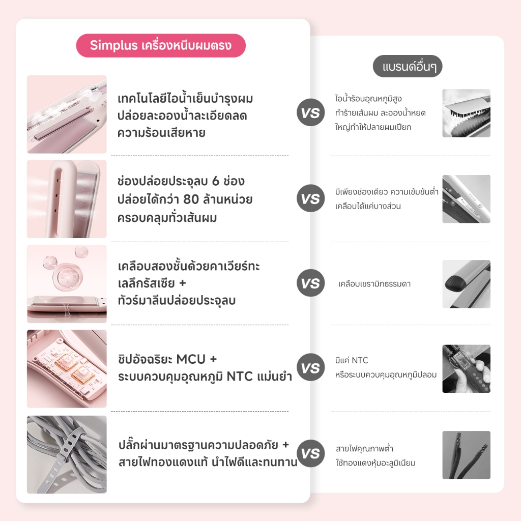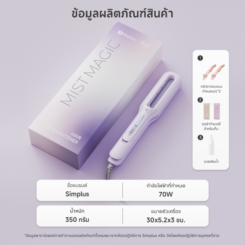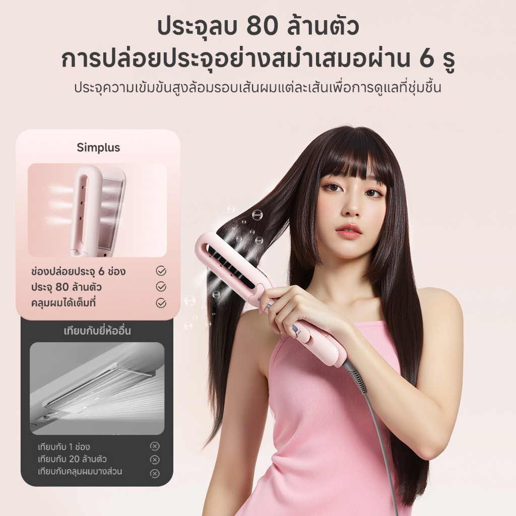 Simplus เครื่องหนีบผมน้ำหมอก ปล่อยประจุลบ 80 ล้าน ฟื้นฟูผมเสีย เคลือบค าเวียร์+ทัวร์มาลีน ควบคุมอุณหภูมิ MCU ZFBA011