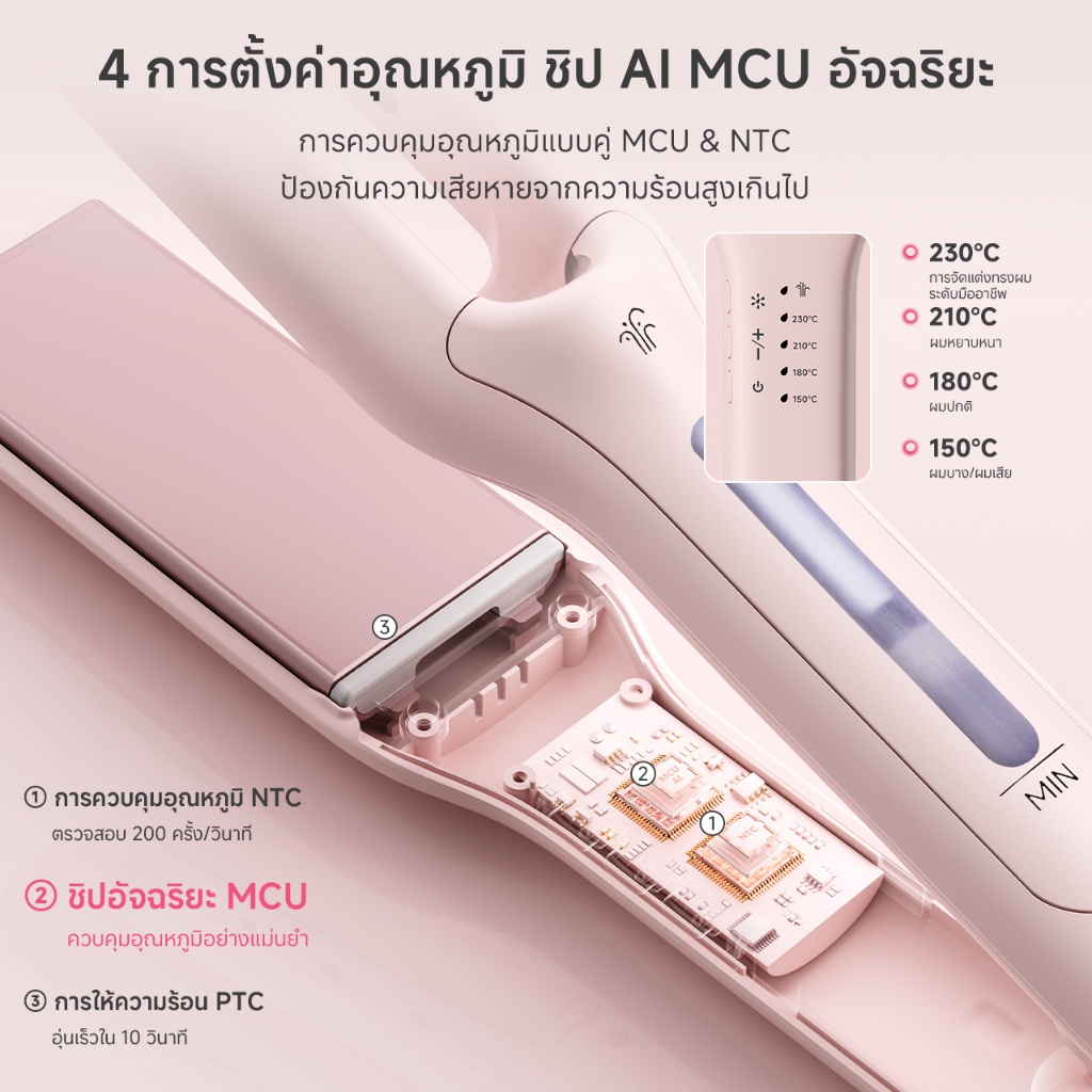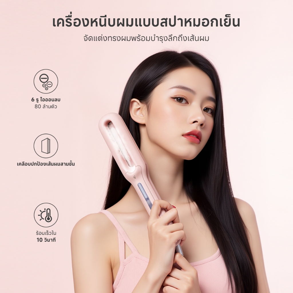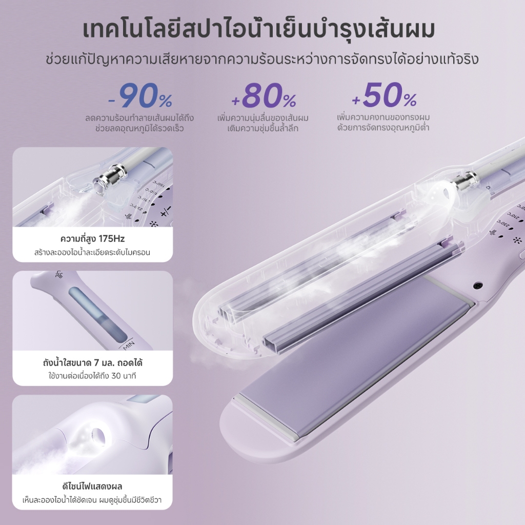 Simplus เครื่องหนีบผมน้ำหมอก ปล่อยประจุลบ 80 ล้าน ฟื้นฟูผมเสีย เคลือบค าเวียร์+ทัวร์มาลีน ควบคุมอุณหภูมิ MCU ZFBA011
