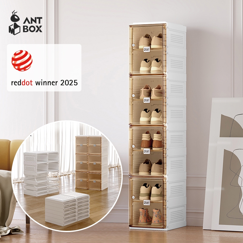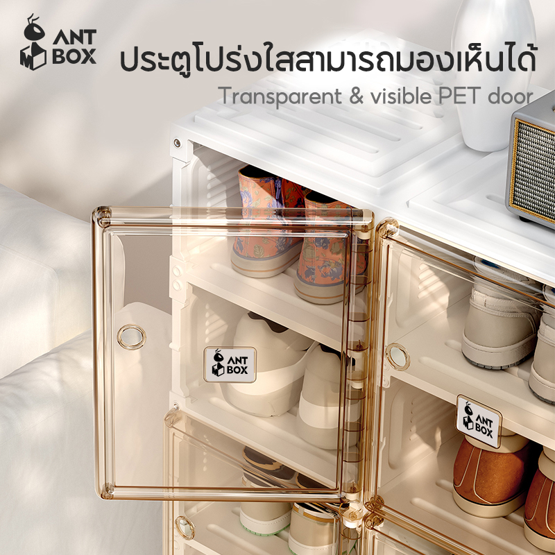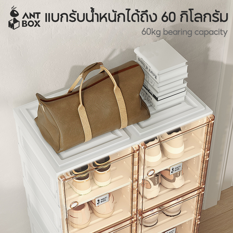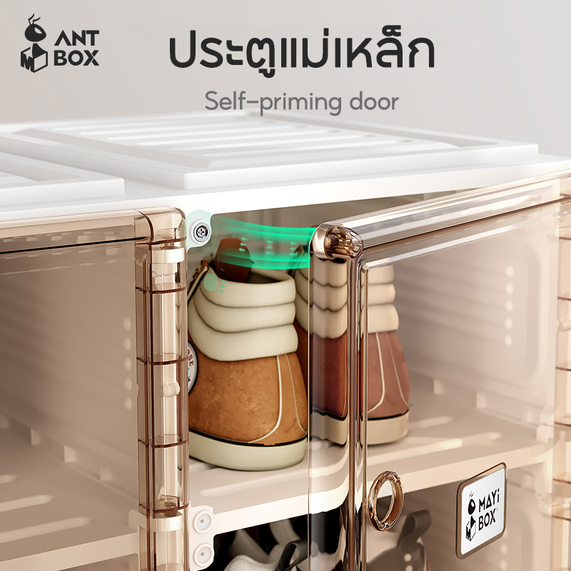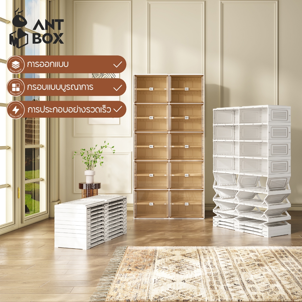 ANTBOX [พร้อมส่ง!!] กล่องใส่รองเท้า 1 แถว ติดตั้งง่าย พับเก็บได้ มีหลายช่องเก็บ ประตูแม่เหล็ก แข็งแรงทนทาน กันน้ำกันแดด