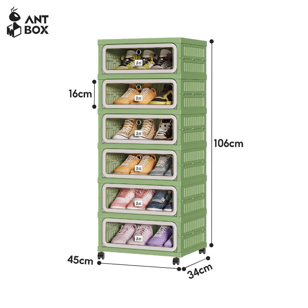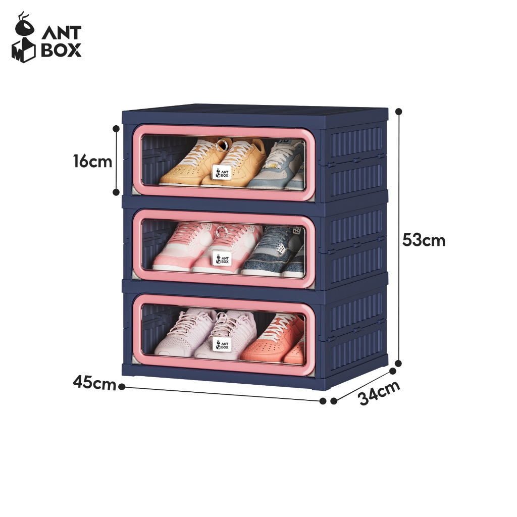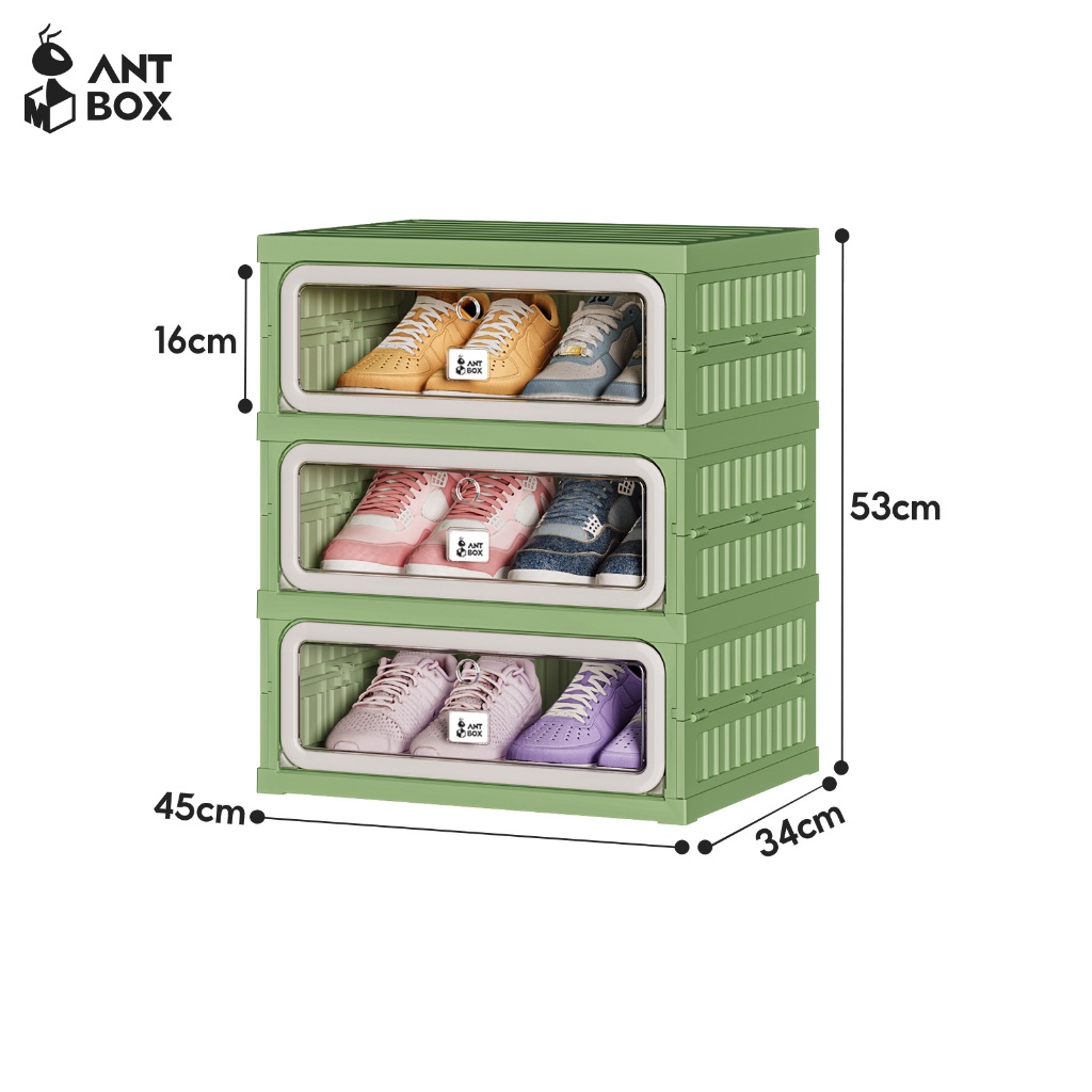 ANTBOX [พร้อมส่ง!!] กล่องใส่รองเท้า 1 แถว ติดตั้งง่าย พับเก็บได้ มีหลายช่องเก็บ ประตูแม่เหล็ก แข็งแรงทนทาน กันน้ำกันแดด