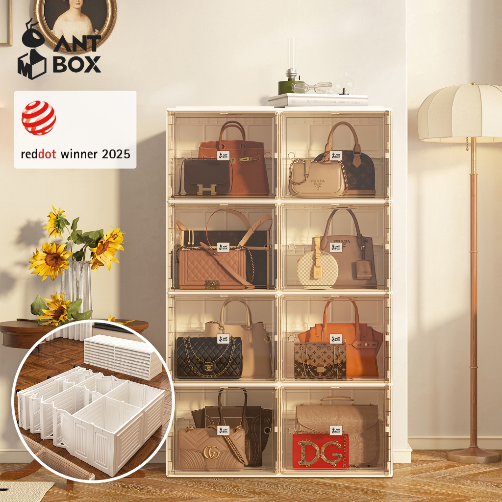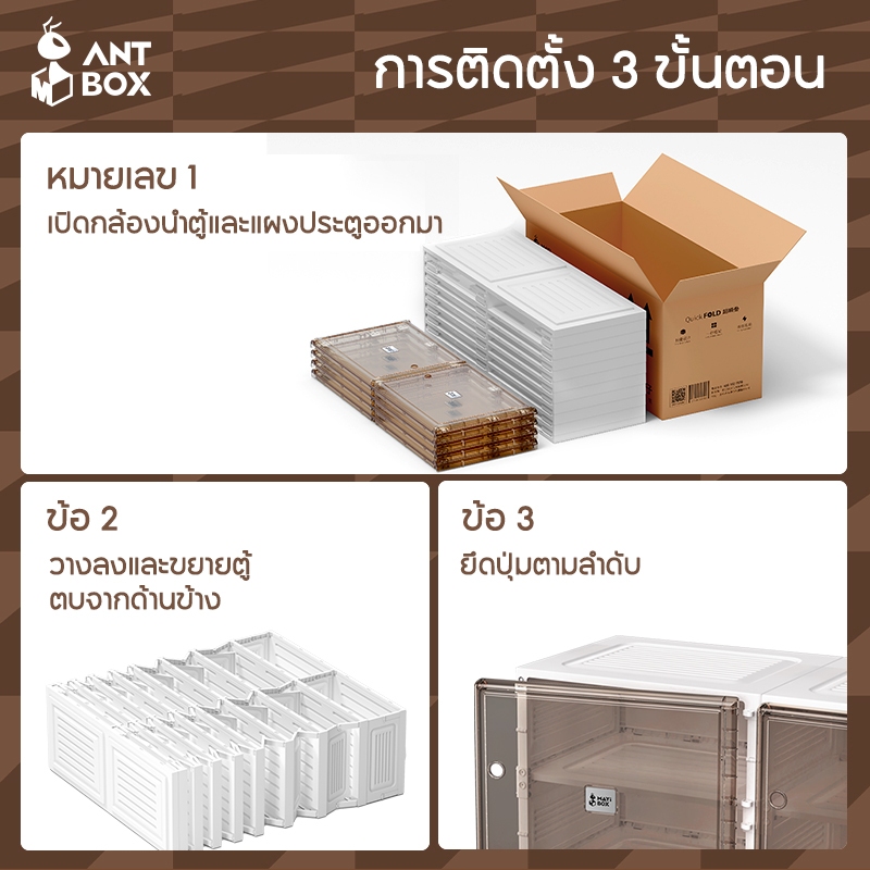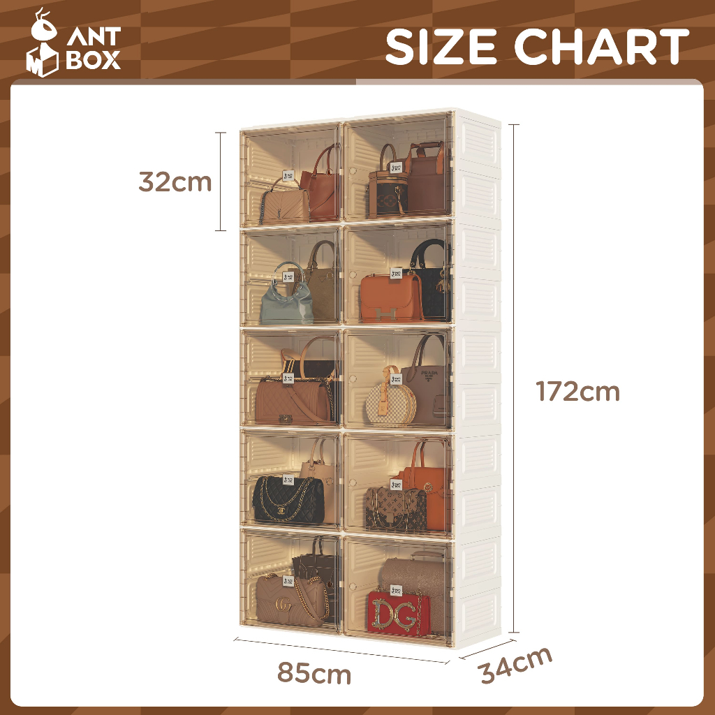 ANTBOX ตู้เก็บรองเท้า 4ช่อง - 10 ช่อง โชว์กระเป๋า ตู้เก็บของ โชว์ของ เอนกประสงค์ ติดตั้งง่าย พับเก็บได้ แข็งแรง ฝาประตูแม่เหล็ก