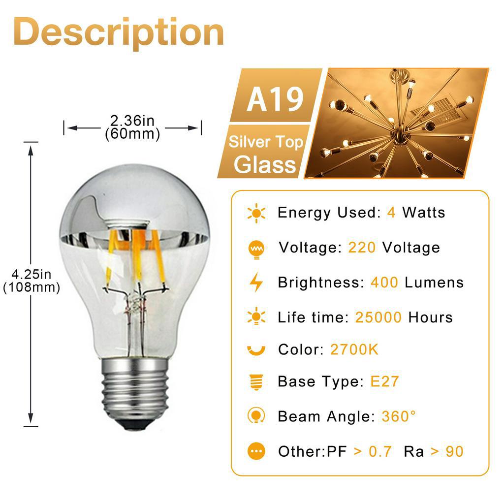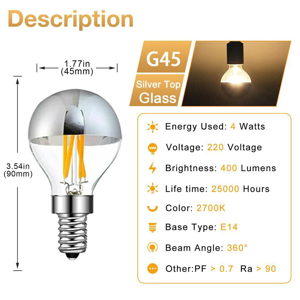 หลอดไฟ LED Edison E14 E27 สีเงิน โครเมี่ยม G45 G95 4W 6W หรี่แสงได้ 2700K สีขาวอบอุ่น สไตล์วินเทจ สําหรับตกแต่งบ้าน