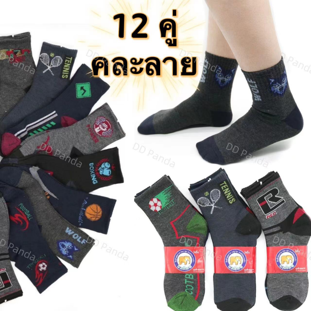 ถุงเท้า ยกแพ็ค12 คู่ คละลาย (ฟรีไซร์ 36-44)ถุงเท้าทำงาน ข้อสั้น มีแบบ6คู่ พร้อมส่ง