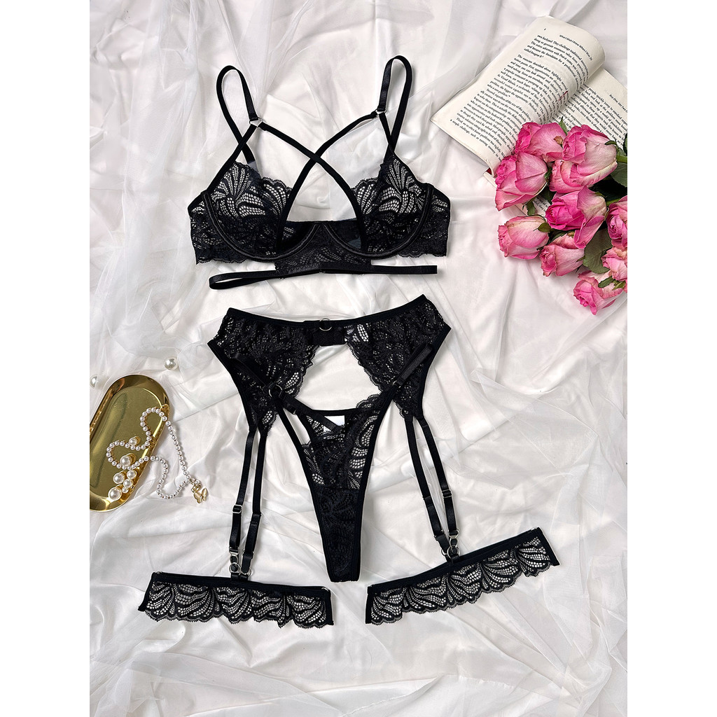 ชุดชั้นในลูกไม้สีดำสำหรับผู้ใหญ่ สไตล์เซ็กซี่