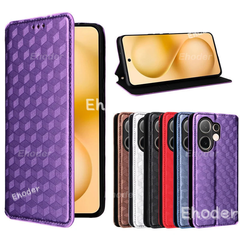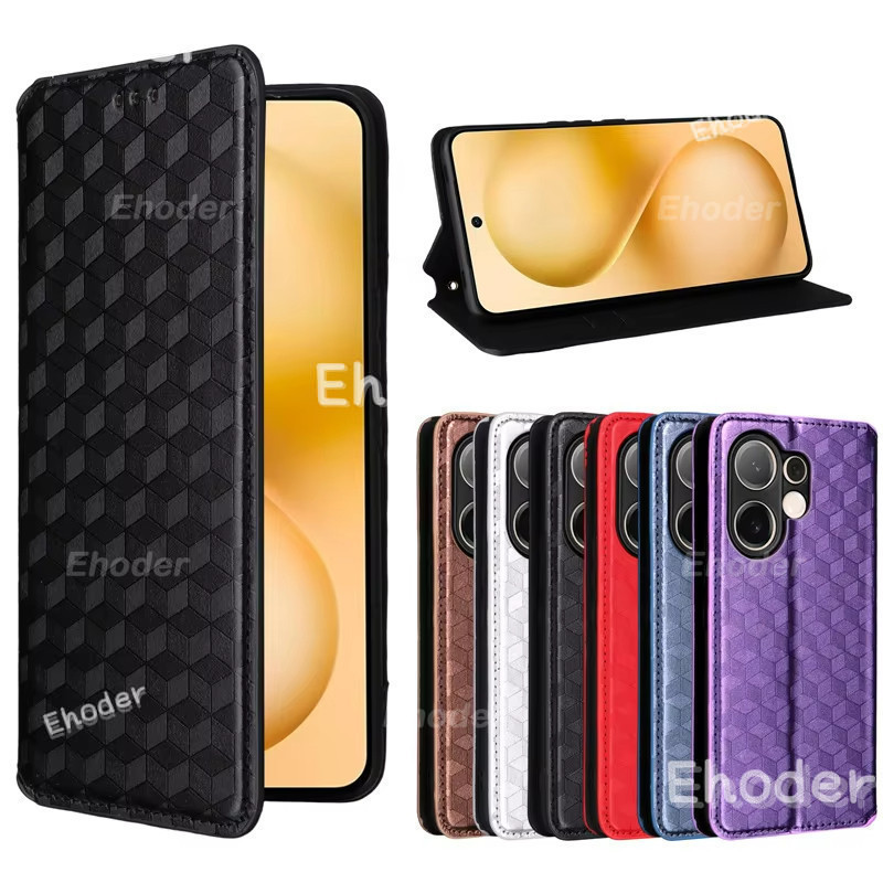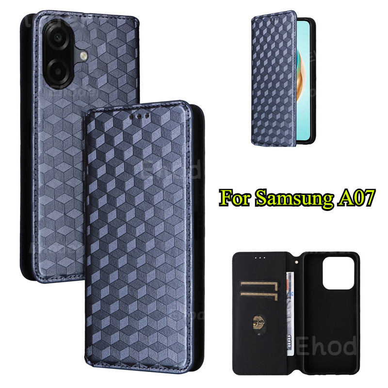 Samsung Galaxy A07 A17 4G 5G 2025 เคสโทรศัพท์พลิกหรูหราปลอกหนังสําหรับSamsungA07 A 07 SamsungA17 17 TPUขอบกันกระแทกกันชนตารางรูปแบบปก