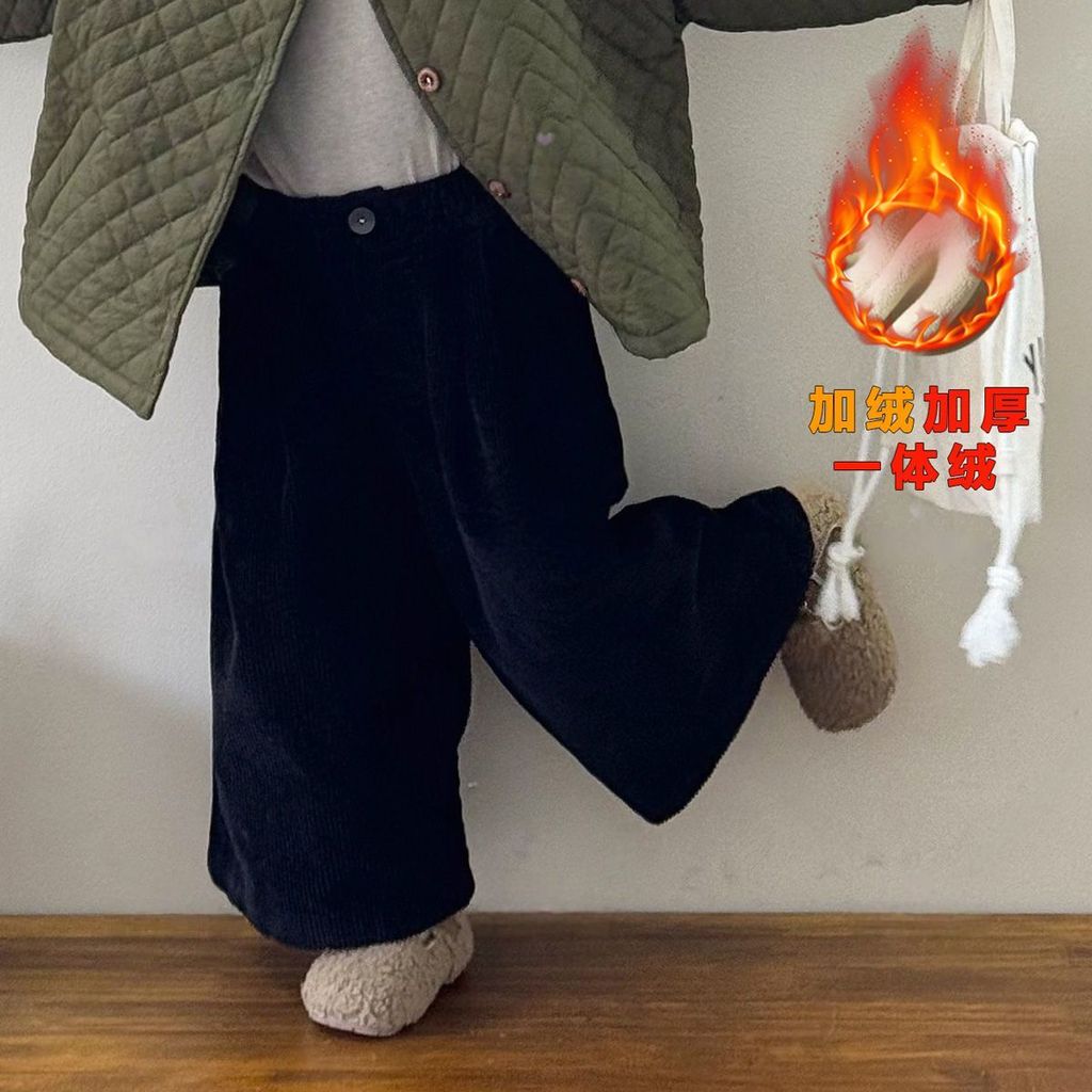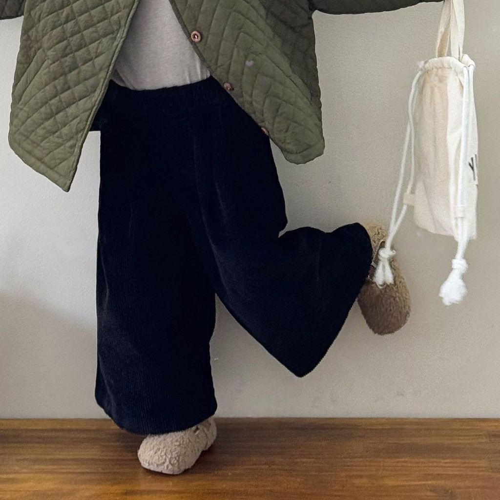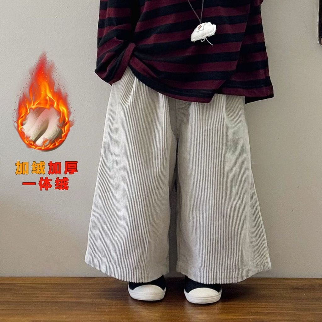 กางเกงขาตรงขนแกะสำหรับฤดูใบไม้ร่วงและฤดูหนาว ดีไซน์เรียบง่ายจากผ้าลูกฟูก