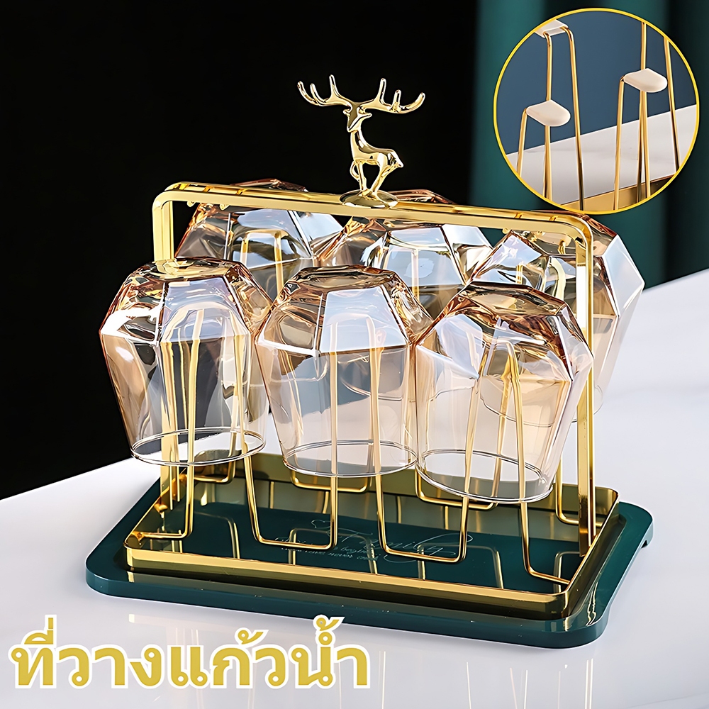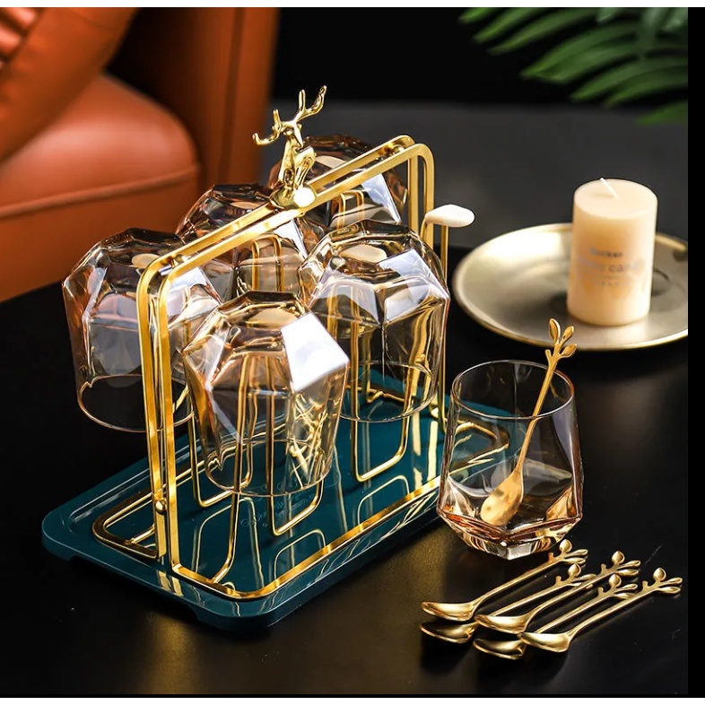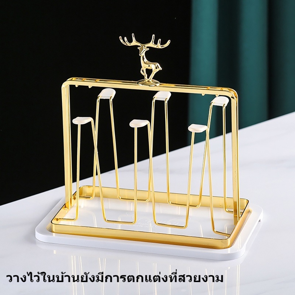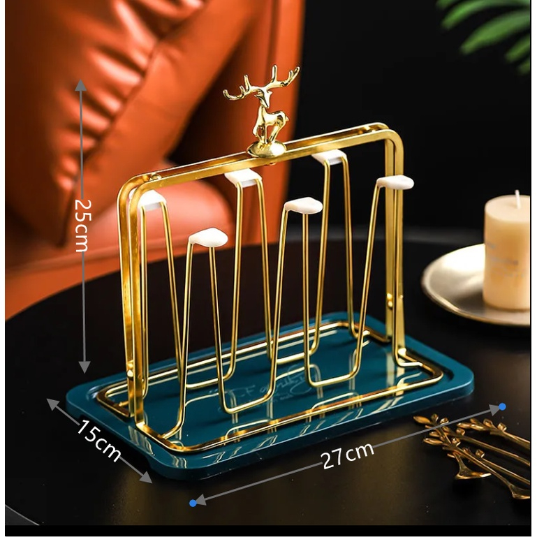 แท่นวางแก้วสีทอง ตัวใส่แก้วน้ำสีทอง พร้อมถาดรอง ชั้นวางถ้วยน้ําในบ้านห้องนั่งเล่นชั้นวางถ้วยเก็บถ้วย
