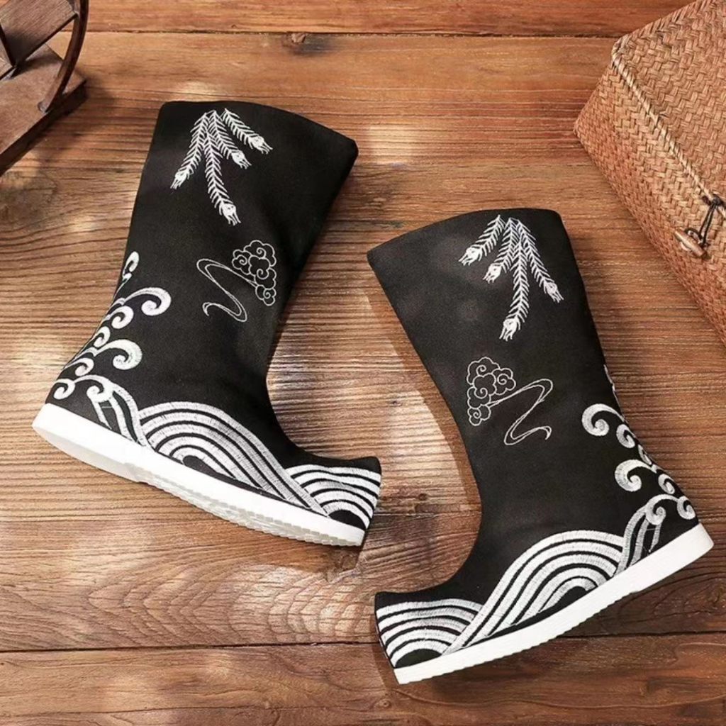 รองเท้าบูท ปักลาย สไตล์จีนโบราณ สําหรับเด็ก และผู้ใหญ่