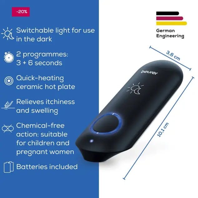 Beurer Insect Sting and Bite Relief with Light Chemical-Free Bug Bite Healer for Day and Night