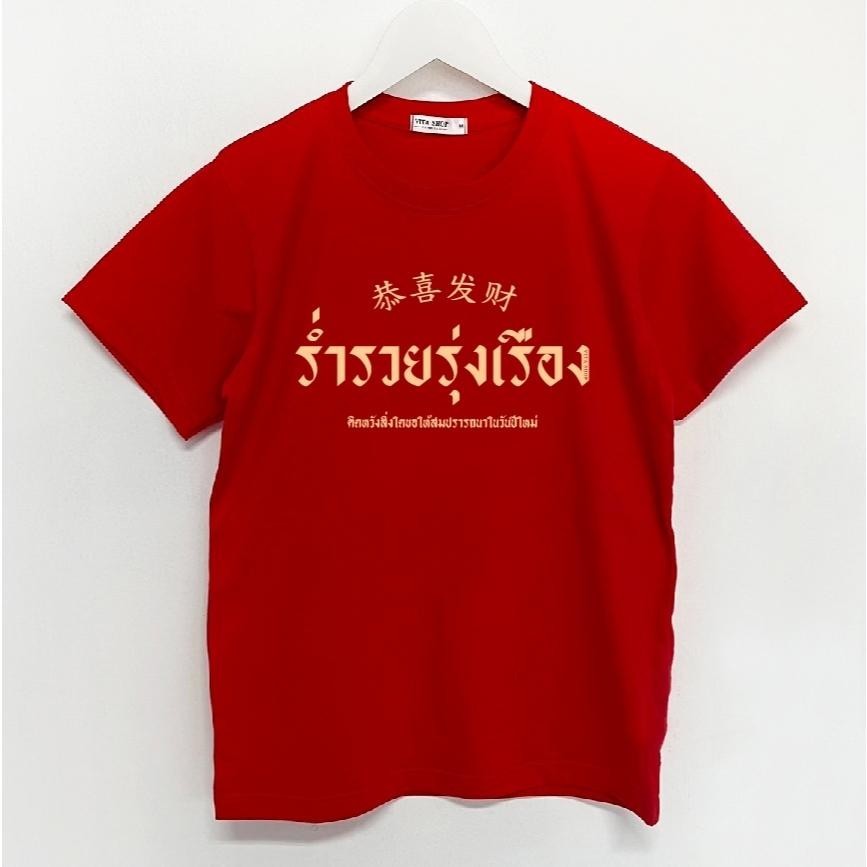(จัดส่งตลอด 24 ชั่วโมง) oversizeเสื้อยืดตรุษจีน 2025 สีแดง ลายมงคล เฮง เฮง มหาเศรษฐี ร่ำรวย ผ้าคอตตอน 100%