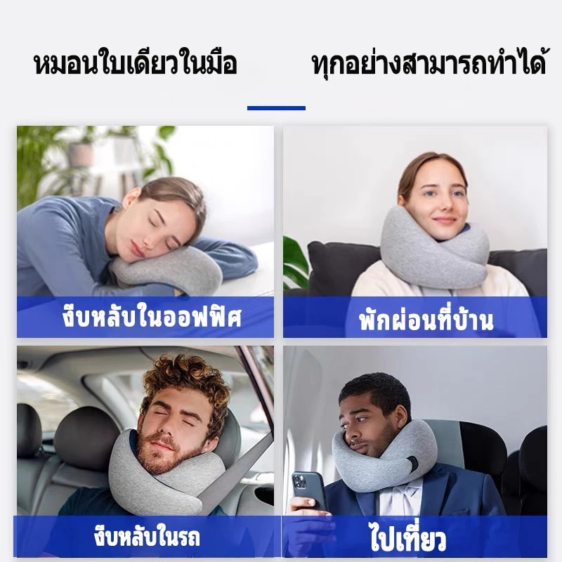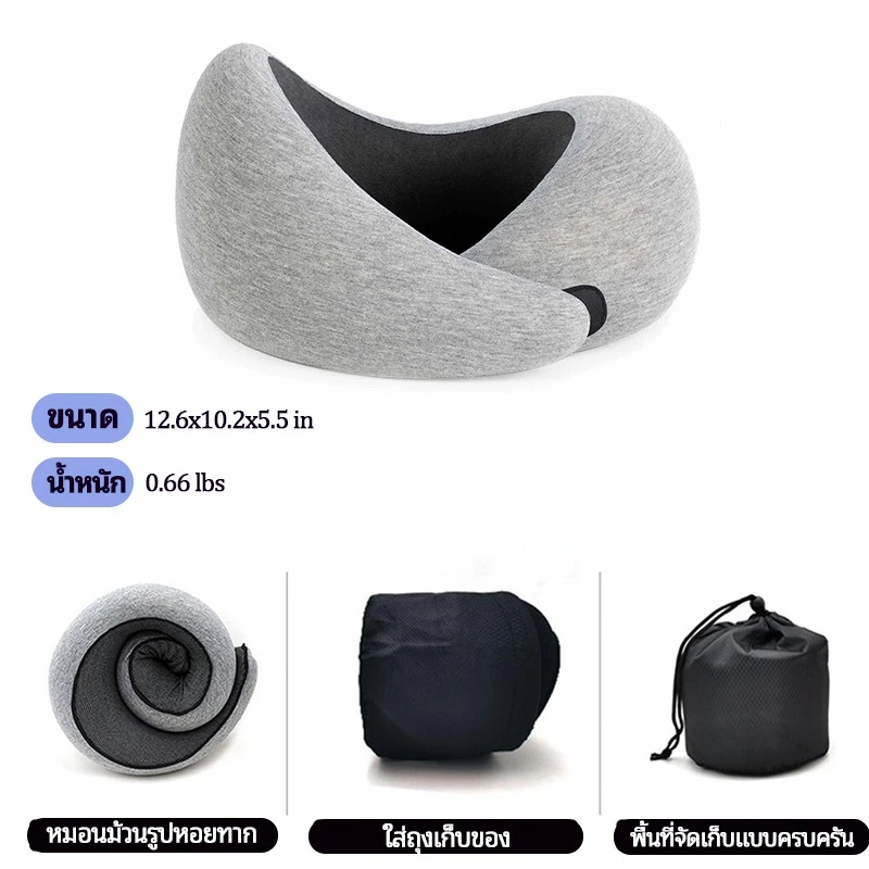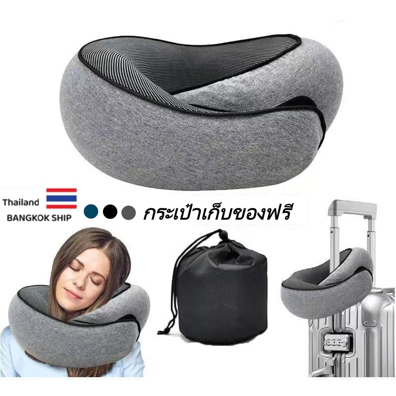 [ถุงเก็บของฟรี] หมอนรองคอแบบพกพา นุ่ม Memory foam หมอนรองคอรถยนต์ travel pillow