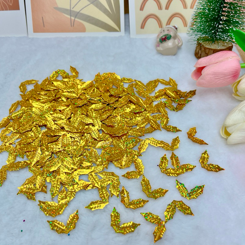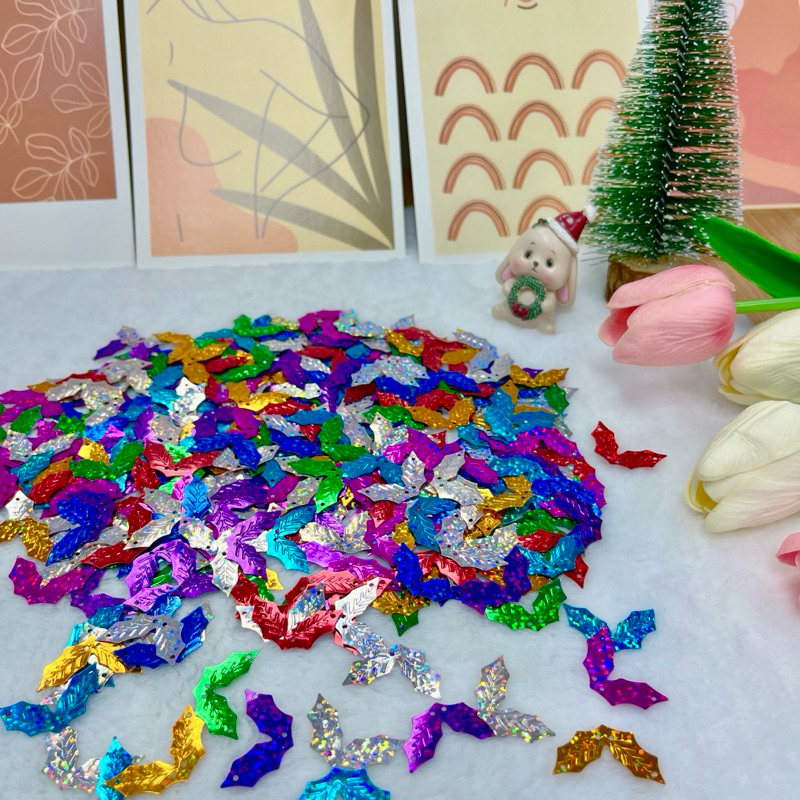เลื่อม ใบเชอรี่ 🍒🍒ใบชมพู่🍐🍐ใบไม้สองแฉก ใช้ประดับโปรยทาน งานประดิษฐ์ต่างๆ แพ็ค 100 ชิ้น พร้อมส่ง 📌📌📌