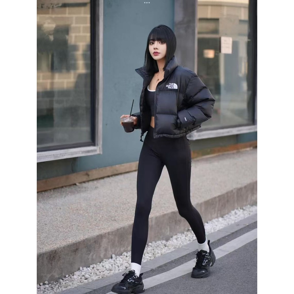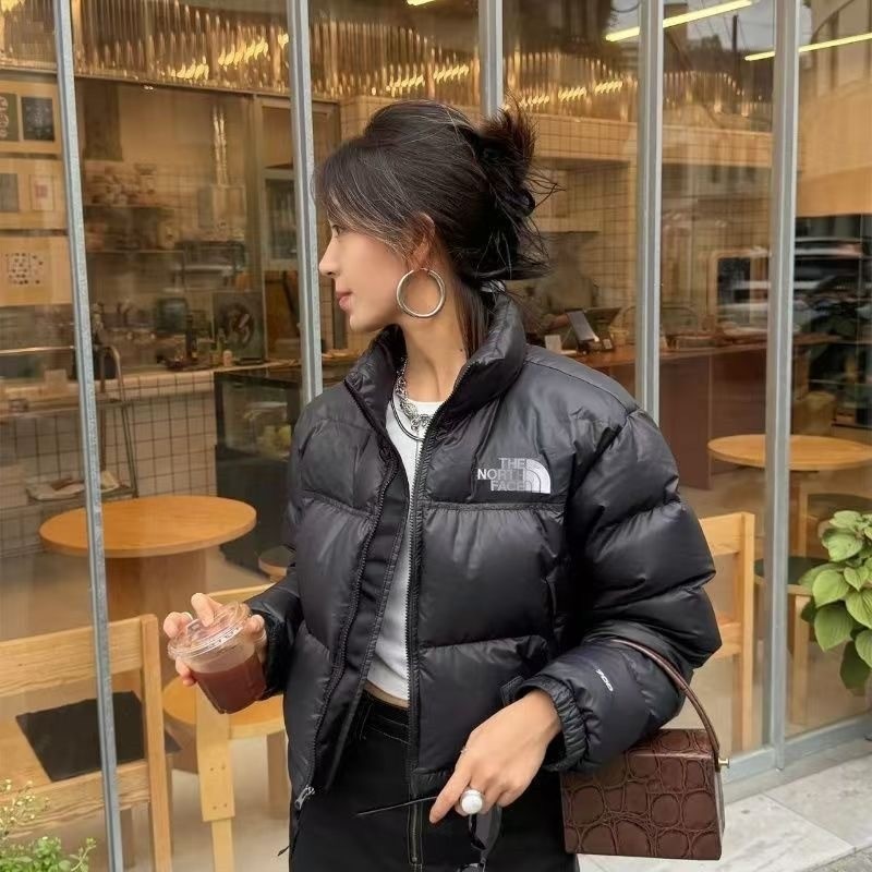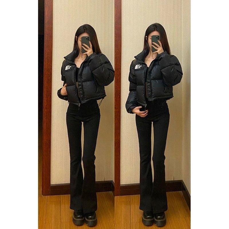 2024 ใหม่สีดํา 1984 เย็บปักถักร้อยสั้นลงเสื้อแจ็คเก็ตผ้าฝ้ายแฟชั่นฤดูหนาว อบอุ่น
