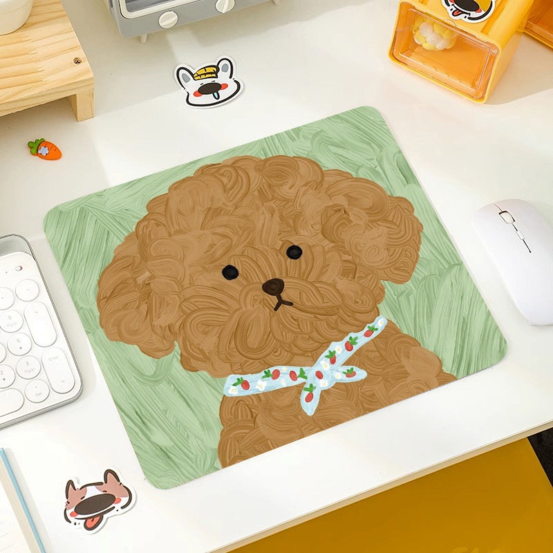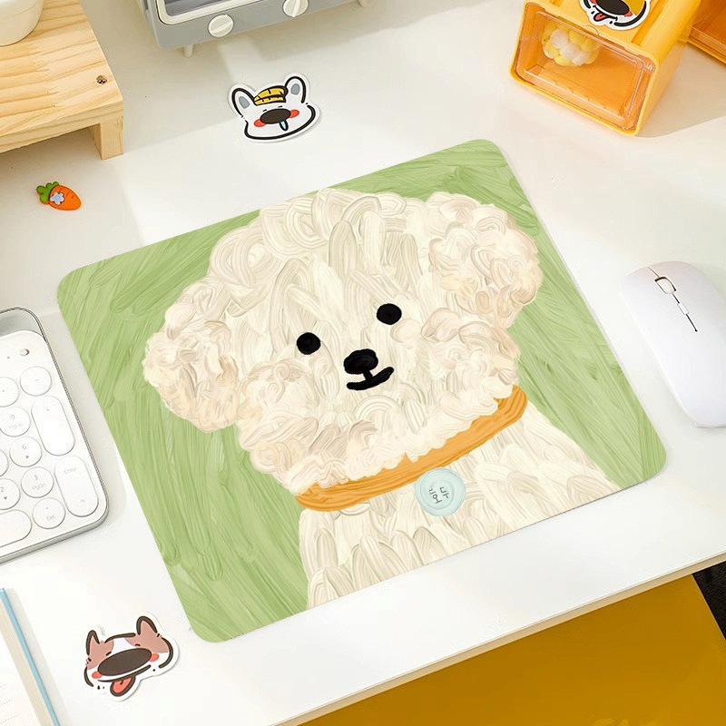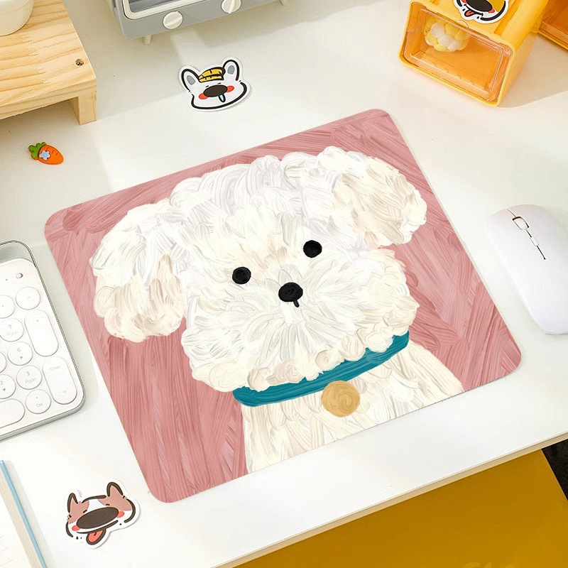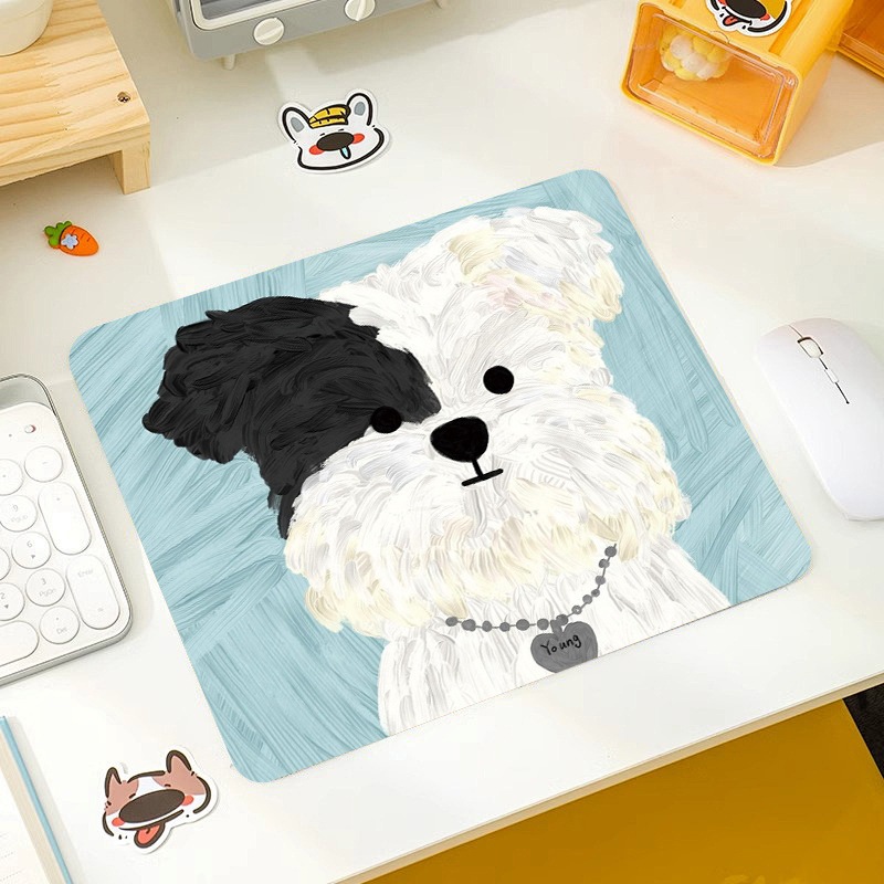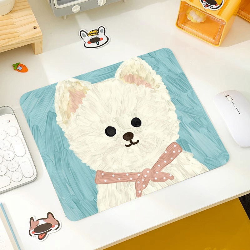 [พร้อมส่ง] แผ่นรองเมาส์ ที่รองเมาส์ ลายการ์ตูนสุนัขน่ารัก งานเย็บขอบ ขนาดเล็ก 210 x 260 x 3 มม. (หนา 3 มม.) Biangels