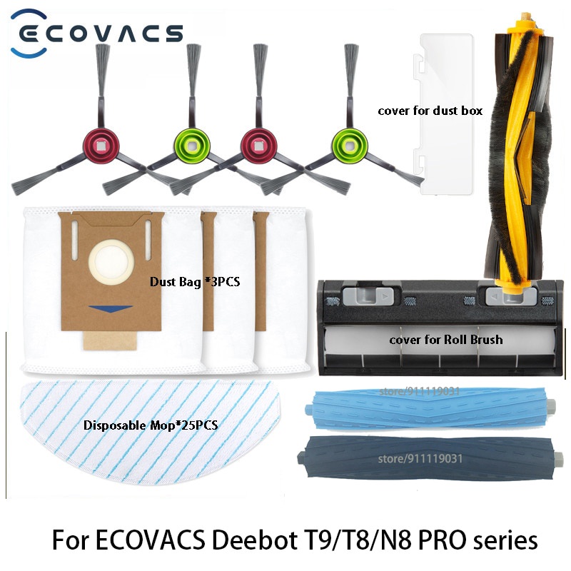 Ecovacs Deebot T9 AIVI T8 AIVI N8 Pro Series อุปกรณ์เสริมเครื่องดูดฝุ่นหุ่นยนต์ แปรงข้างหลัก ผ้าขี้ริ้ว ถู ฝาครอบแปรง
