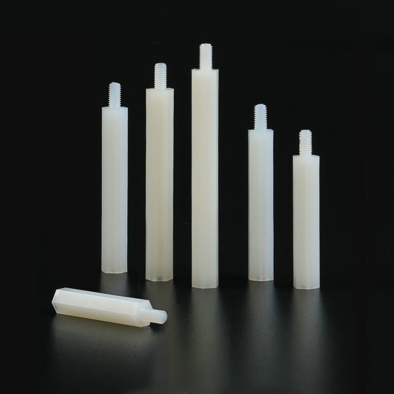 สกรูสเปเซอร์ ไนล่อน PCB M3+6 มม. M3 ตัวผู้ เป็นตัวเมีย สีขาว 10 ชิ้น
