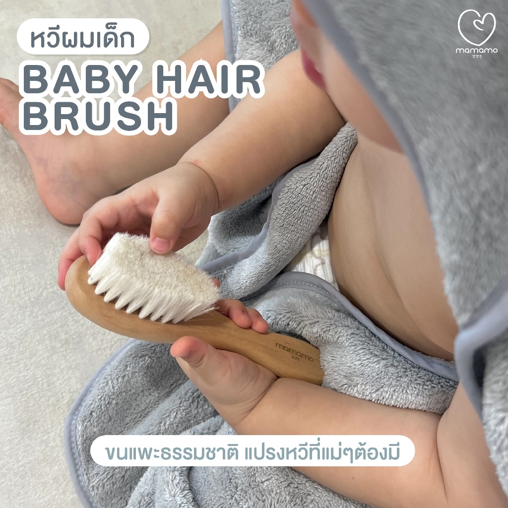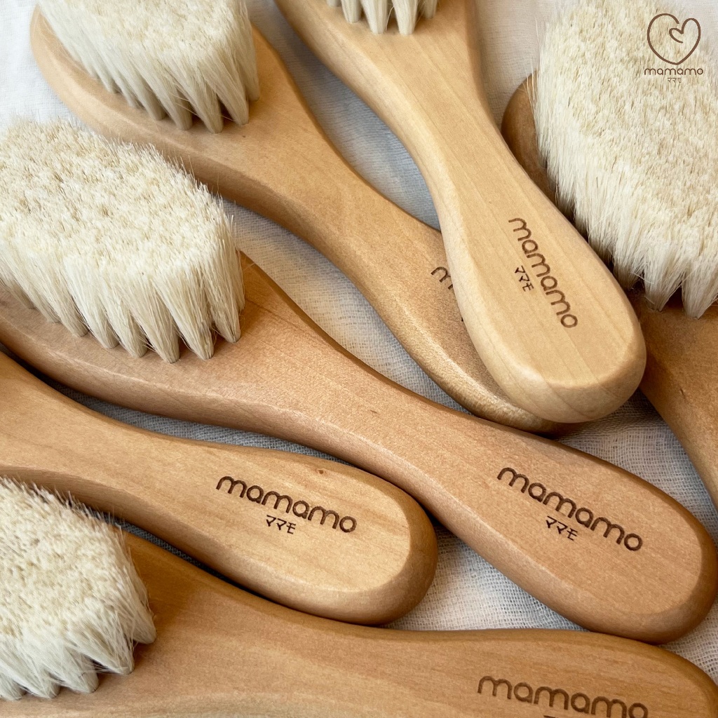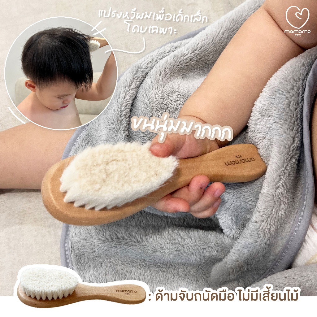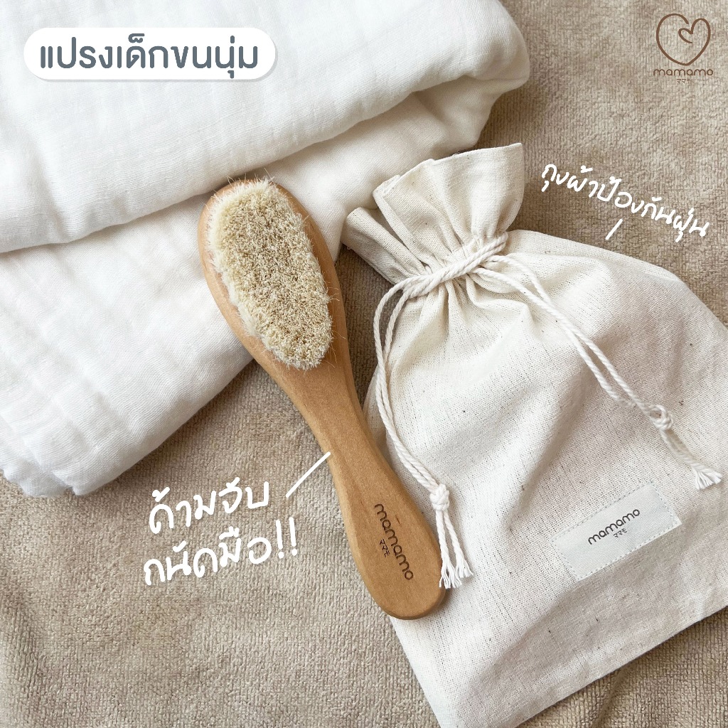 Mamamo แปรงหวีผมเด็ก ขนแพะธรรมชาติ ช่วยบำรุงเส้นผม อ่อนโยนต่อหนังศรีษะ พร้อมส่ง