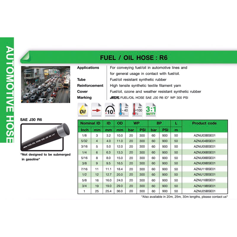 (ราคาต่อ 50cm) สายน้ำมัน R6 สำ หรับ เบนซิน ดีเซล Fuel/Oil Hose
