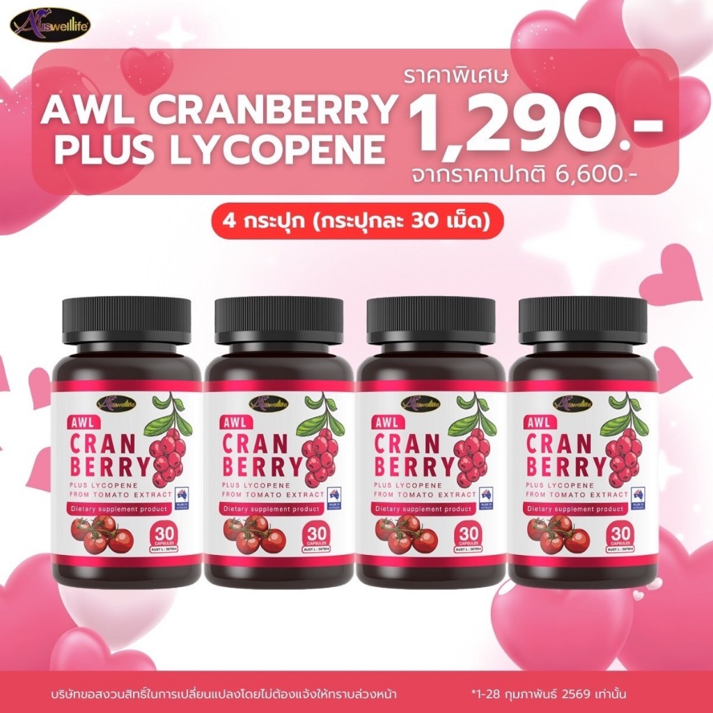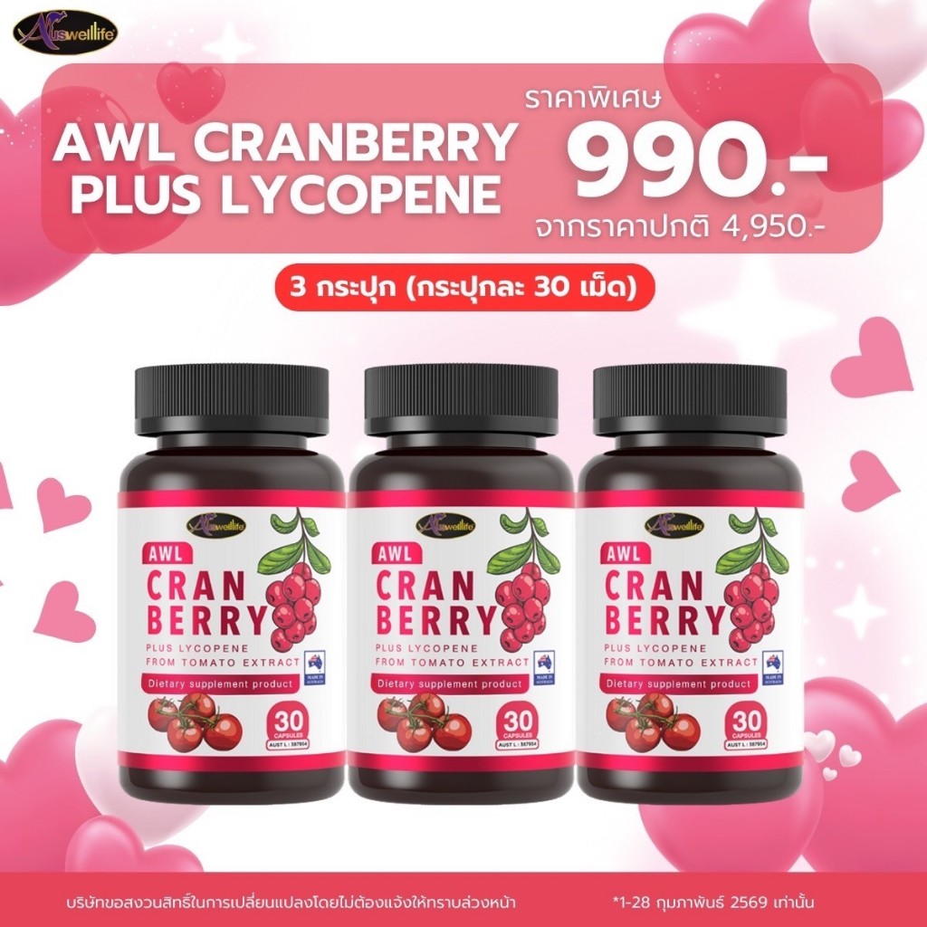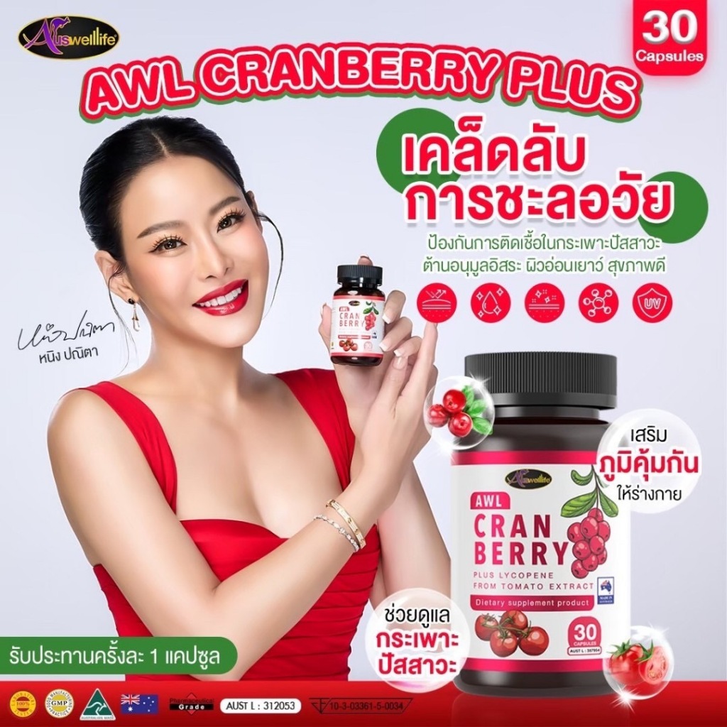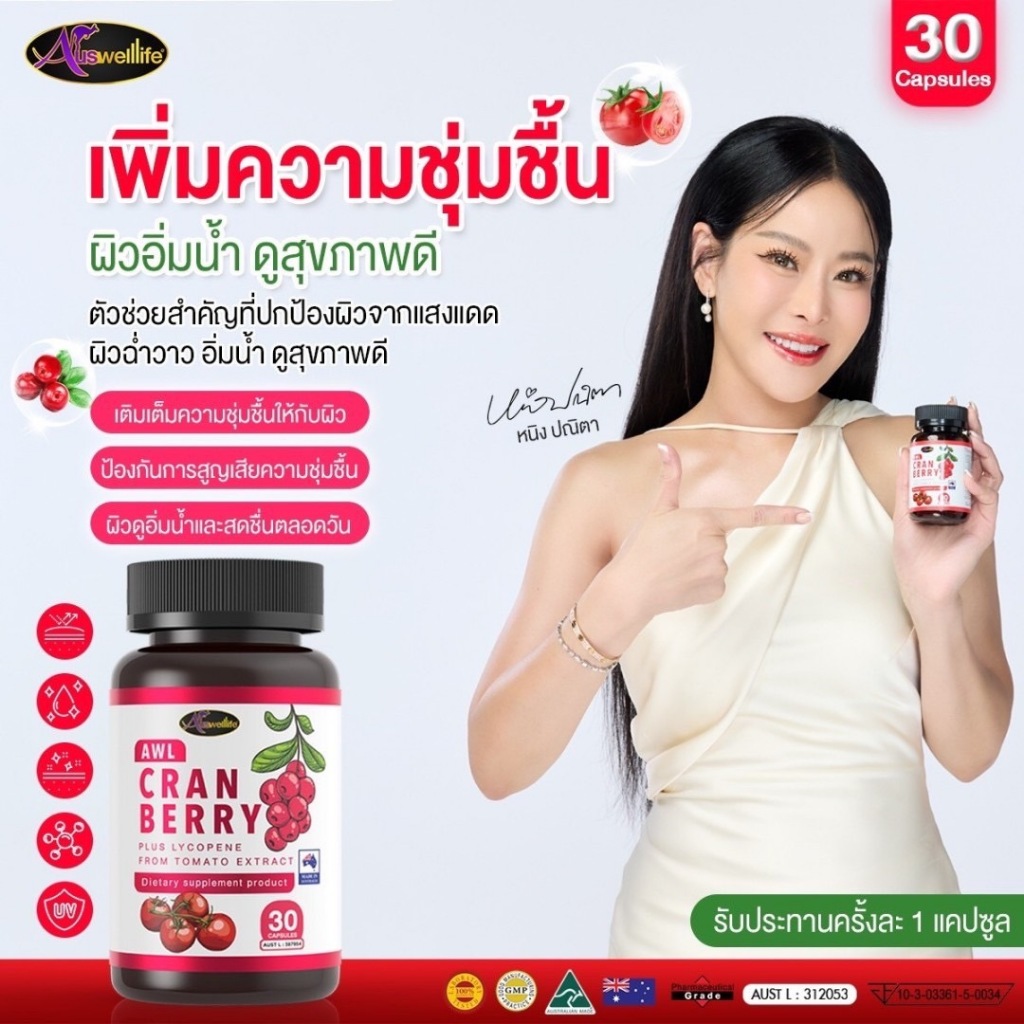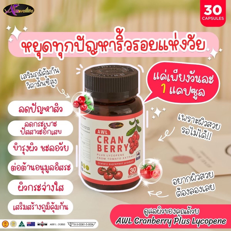 Cranberry Auswelllife แครนเบอร์รี่ วิตามินซีเข้มข้น ผิวใส ลดฝ้ากระ AWL Cranberry ของแท้ ส่งฟรี