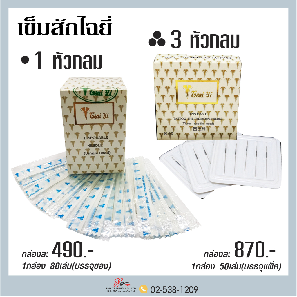 เข็มสักคิ้ว สำหรับใส่เครื่องไฉยี่ ชนิด1หัวและ3หัวกลม เข็มสักไฉยี่ เข็มสักมือ อุปกรณ์สักคิ้ว ส่งไว