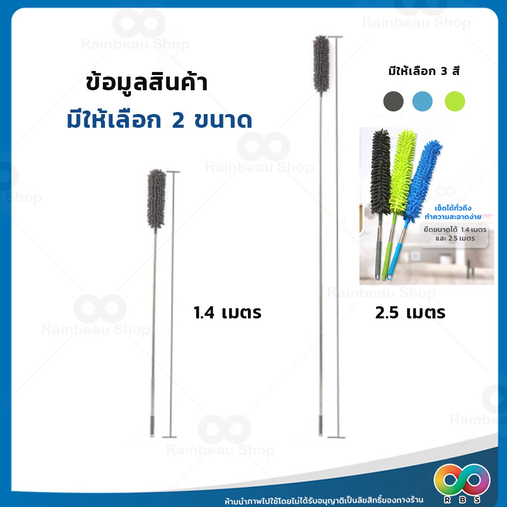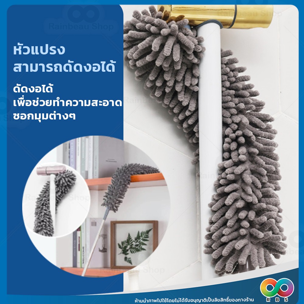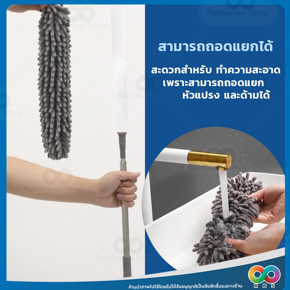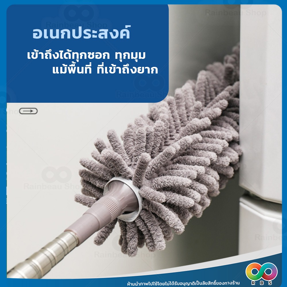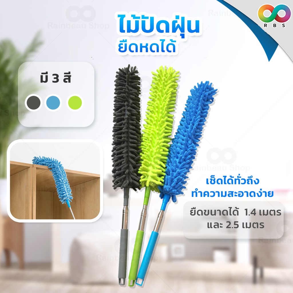 RAINBEAU ไม้ปัดฝุ่น ตัวหนอน ผ้าไมโครไฟเบอร์ ปรับยาวได้ 1.4 ม. และ 2.5 ม. ดักจับฝุ่น99% งอตัวได้