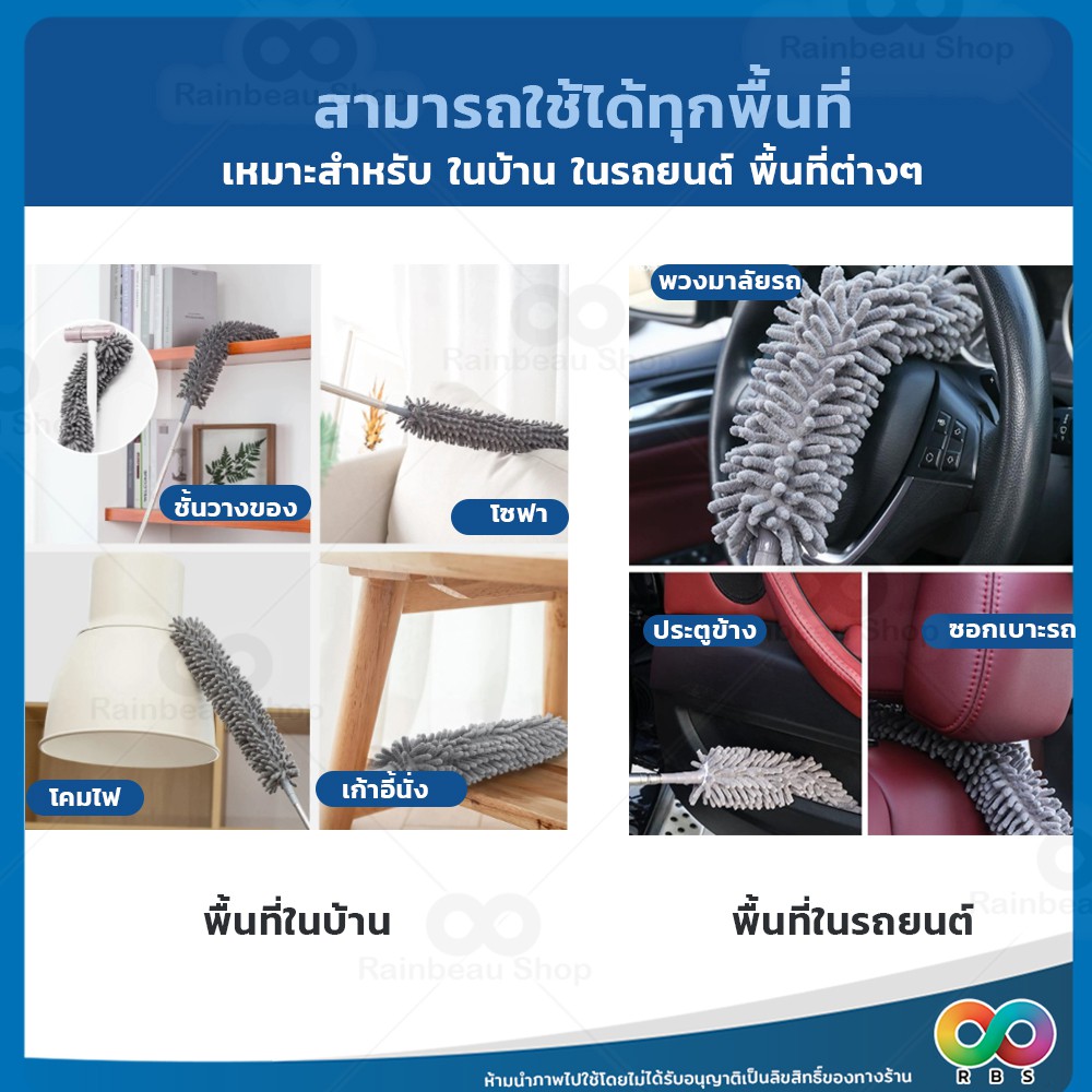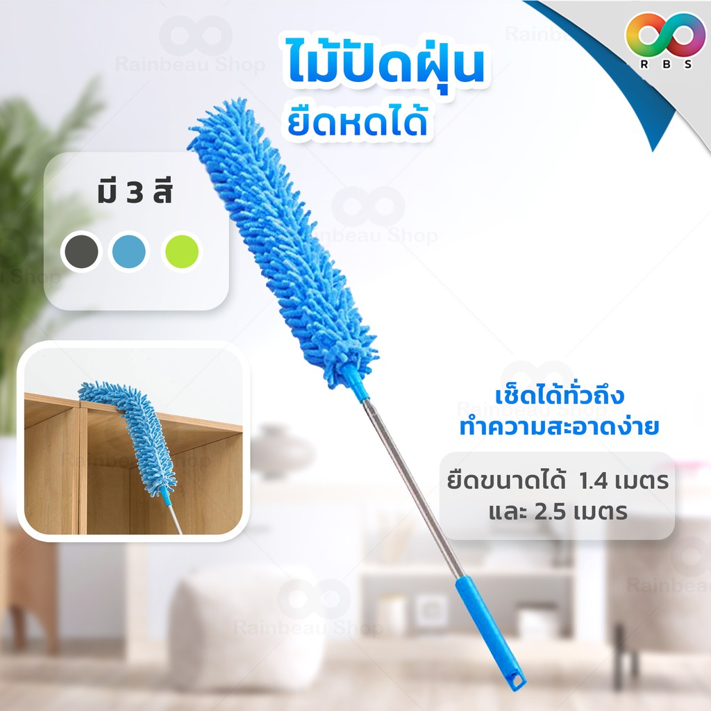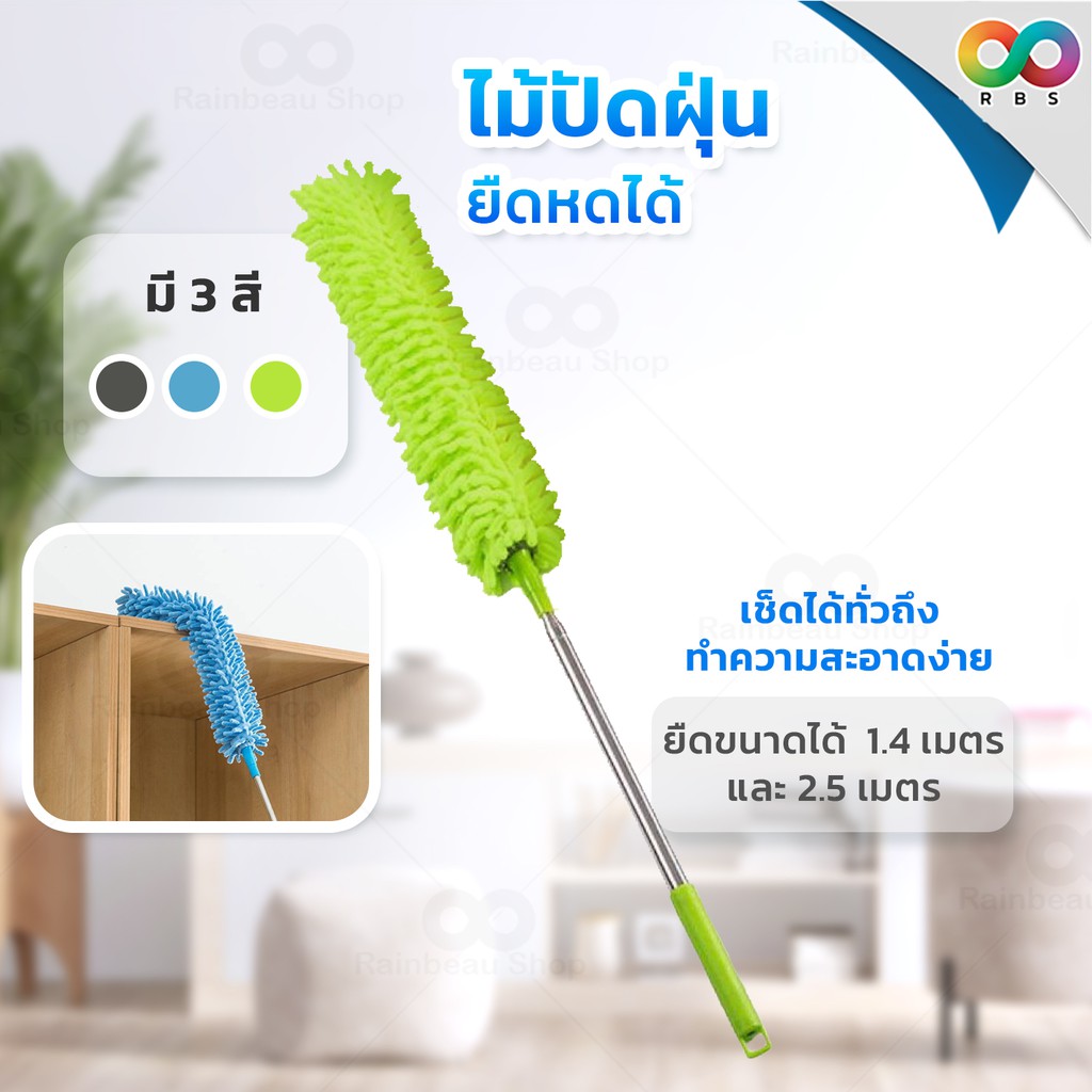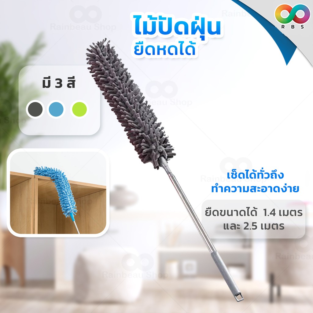 RAINBEAU ไม้ปัดฝุ่น ตัวหนอน ผ้าไมโครไฟเบอร์ ปรับยาวได้ 1.4 ม. และ 2.5 ม. ดักจับฝุ่น99% งอตัวได้