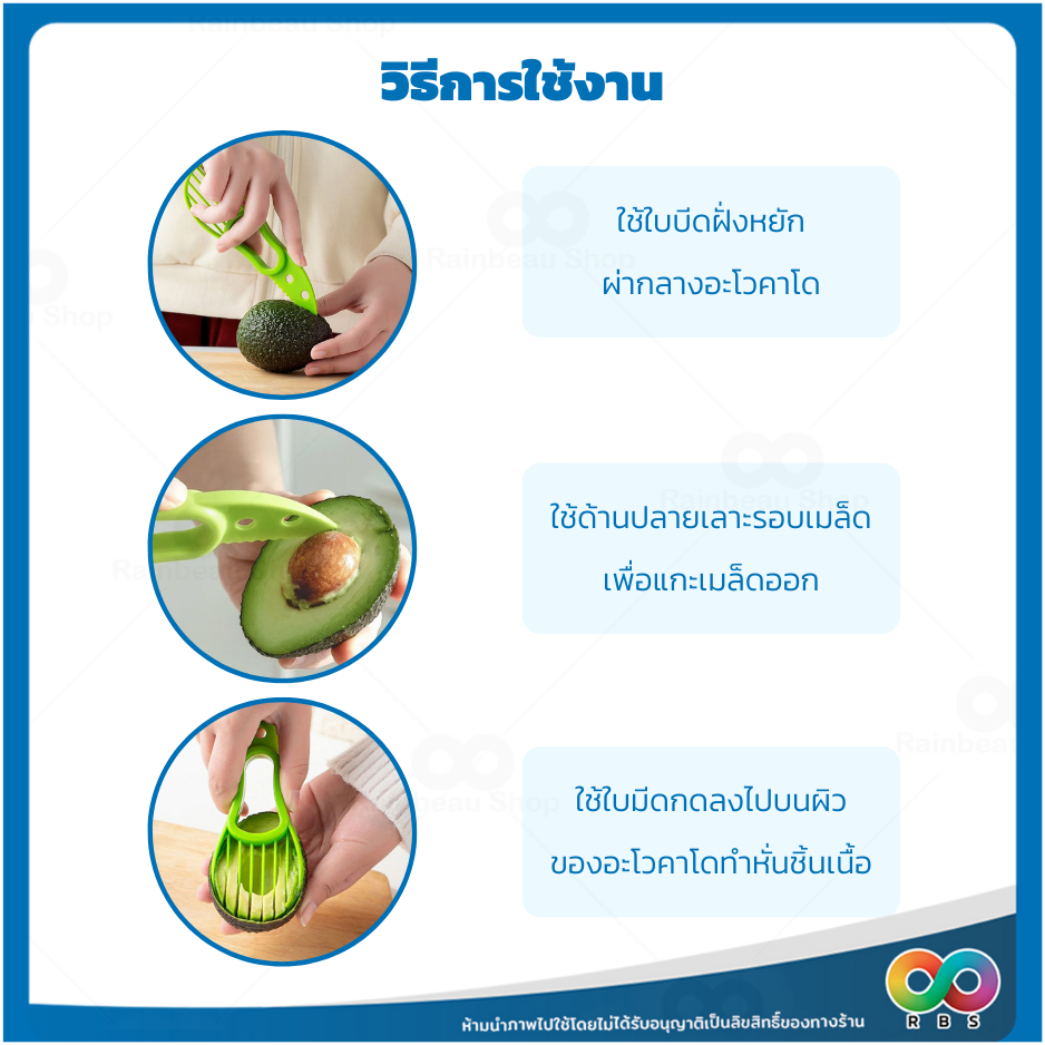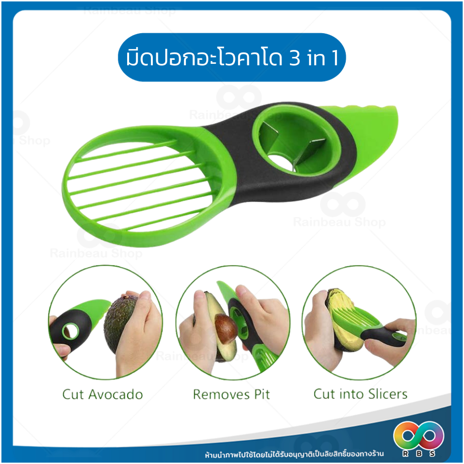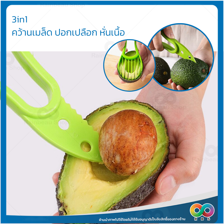 🌈RBS🌈 มีดปอกผลไม้ อโวคาโด ที่ปอกและหั่นอะโวคาโด 3in1 ที่ปอก ที่หั่น ผลไม้ แก้วมังกร กีวี่ น้ำหนักเบา จับถนัดมือ