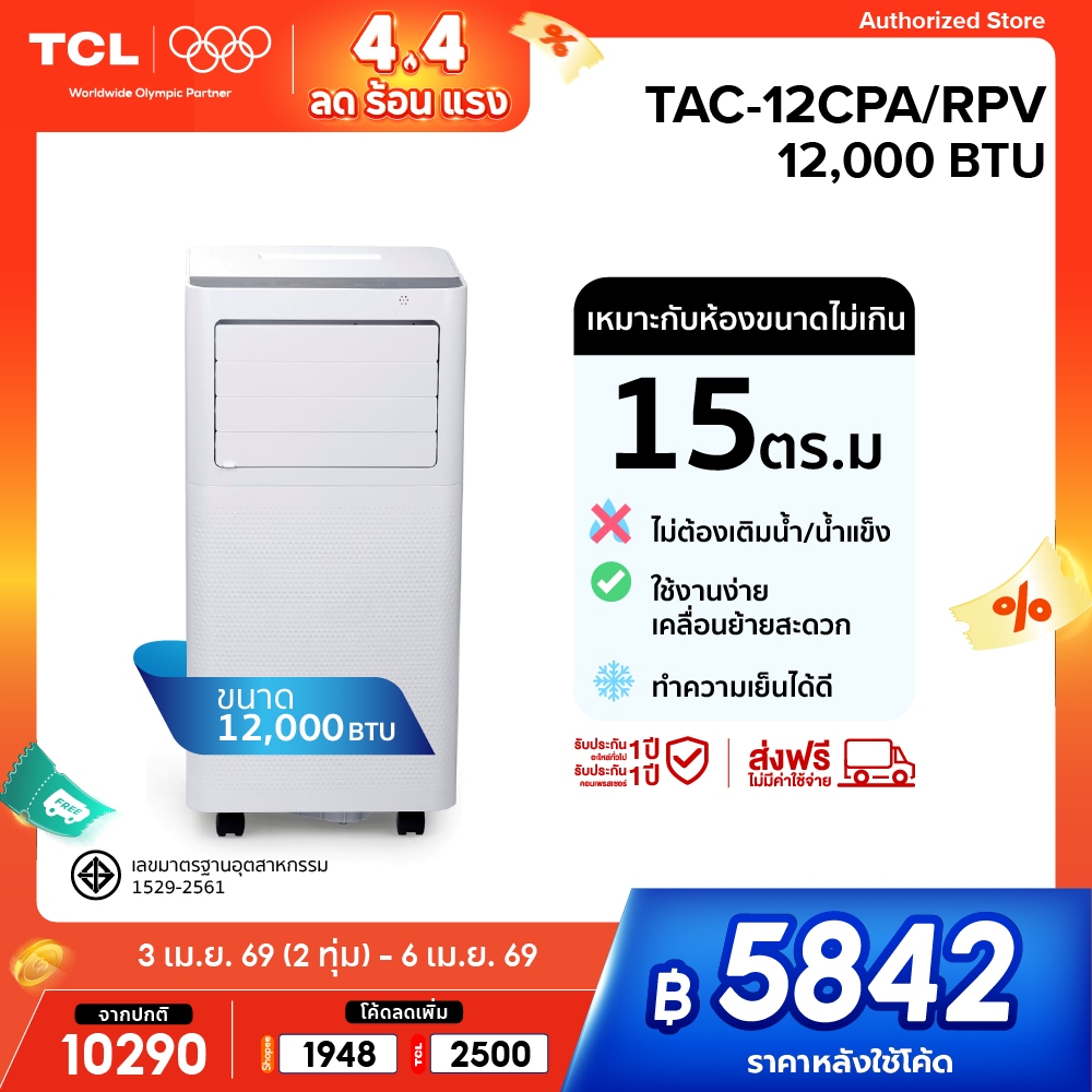 TCL แอร์เคลื่อนที่ ขนาด 12000 BTU รุ่น TAC-12CPA/RPV Portable air ระบบสัมผัส หน้าจอ LED เย็นเร็ว