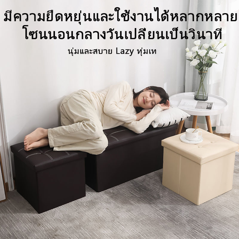 กล่องเก็บของนั่งได้ PU โชฟา แบบหุ้มหนัง กล่องเก็บของ นั่งได้ กล่องใส่ของ พับได้ กล่องใส่เสื้อ เก้าอี้สตูลเปิดเก็บ