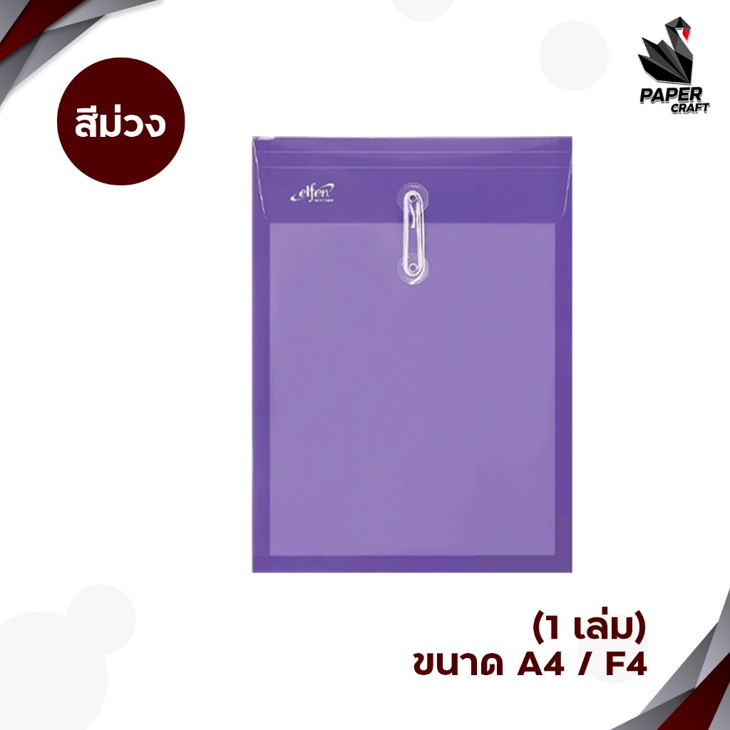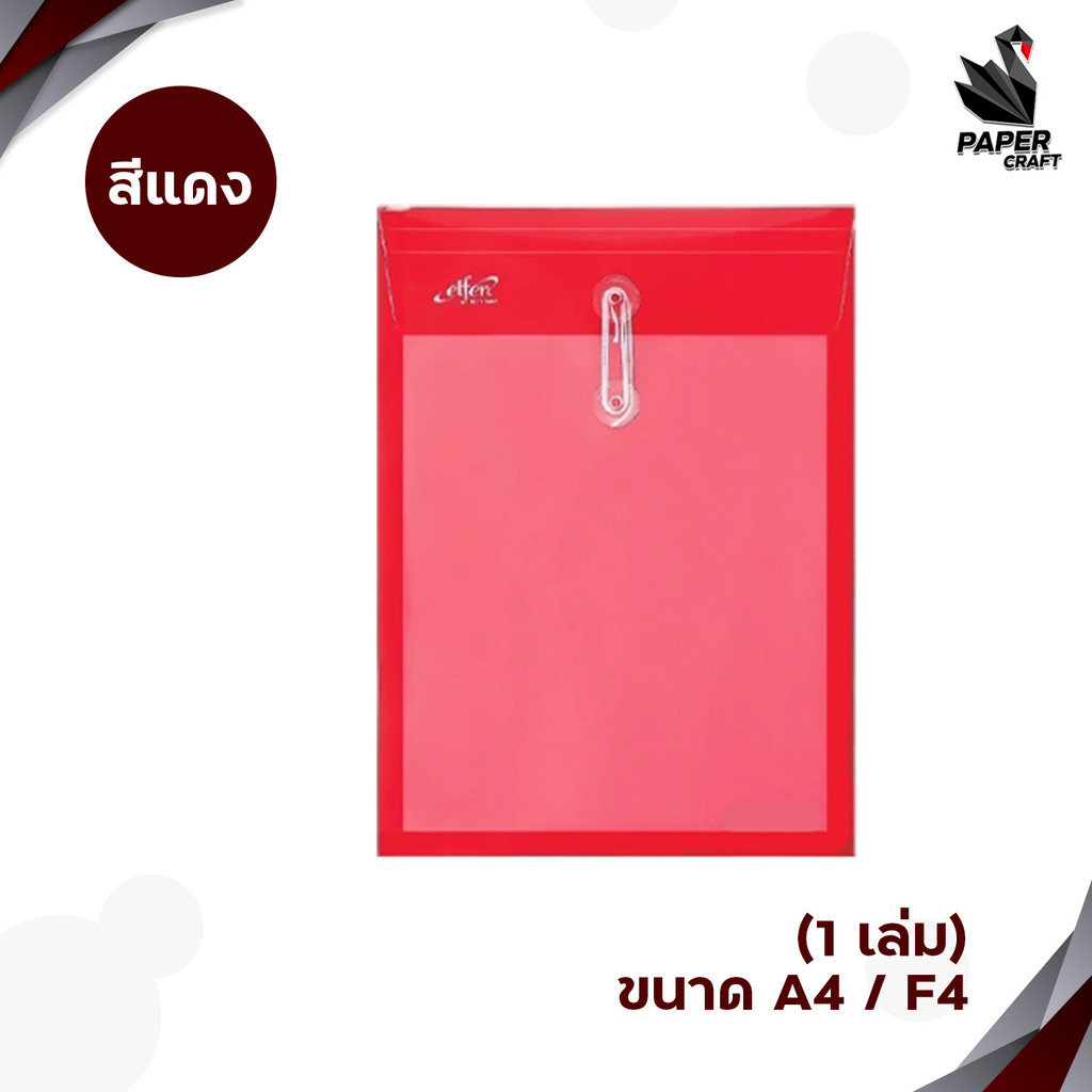 Elfen (เอลเฟน) แฟ้มซองพลาสติก ตาไก่ ผูกเชือก รุ่น 115A / 115F (1 ชิ้น)