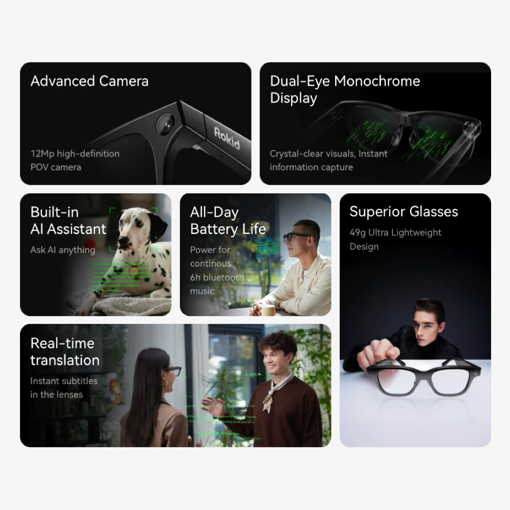 Rokid แว่นตา AI Glasses น้ำหนักเบา ถ่ายภาพได้ ผู้ช่วย AI อัจฉริยะ พร้อมฟังก์ชั่นแปลภาษาแบบ Real-time