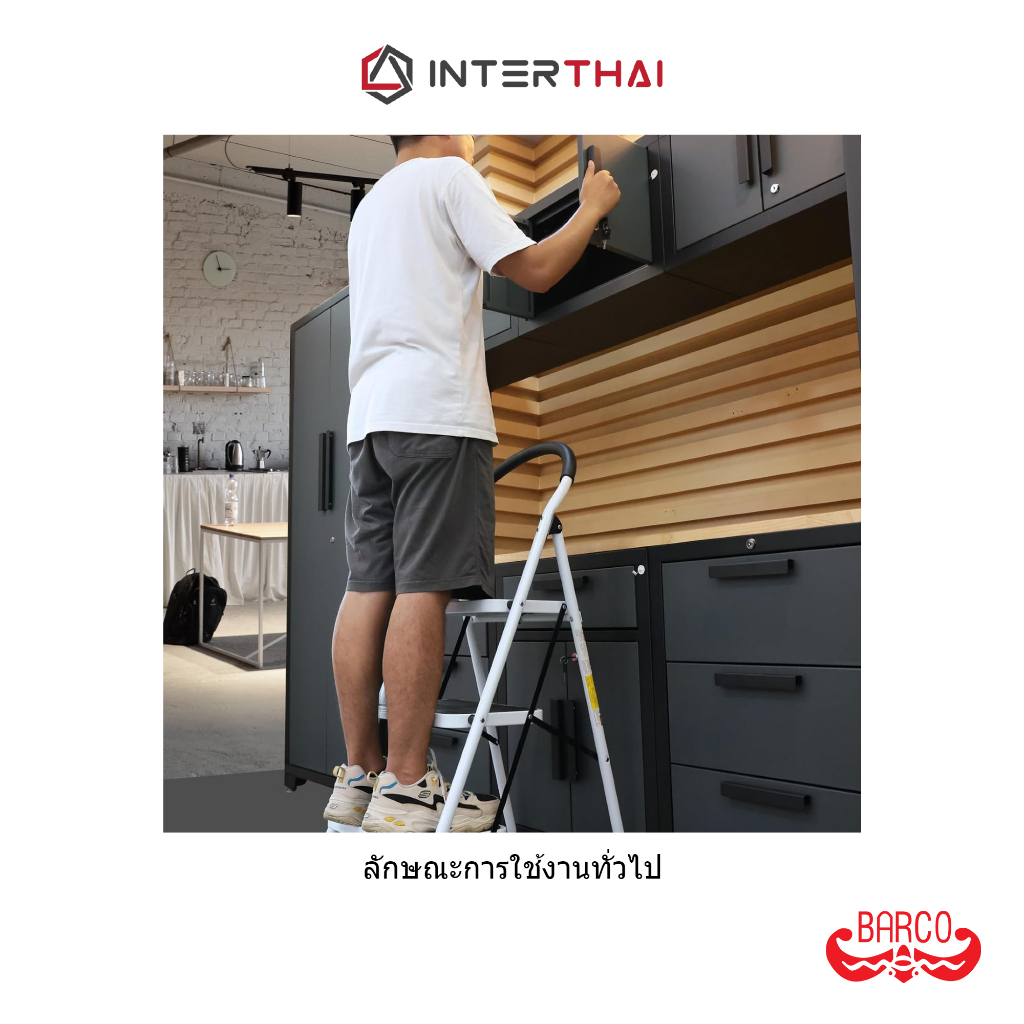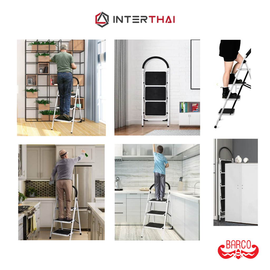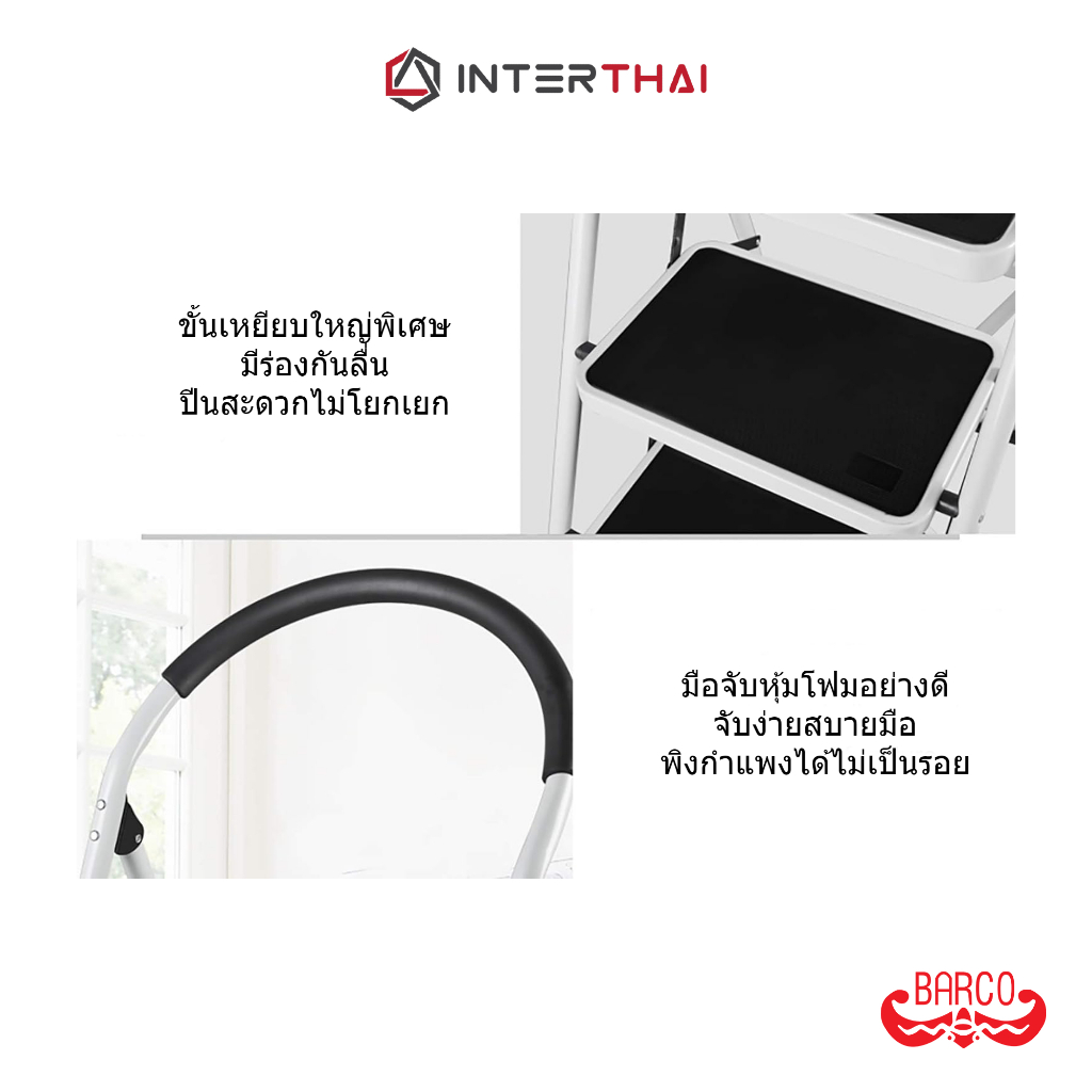 BARCO บันไดเหล็กกล้ามีราวจ ับ รุ่น 4 ขั้น สีขาว