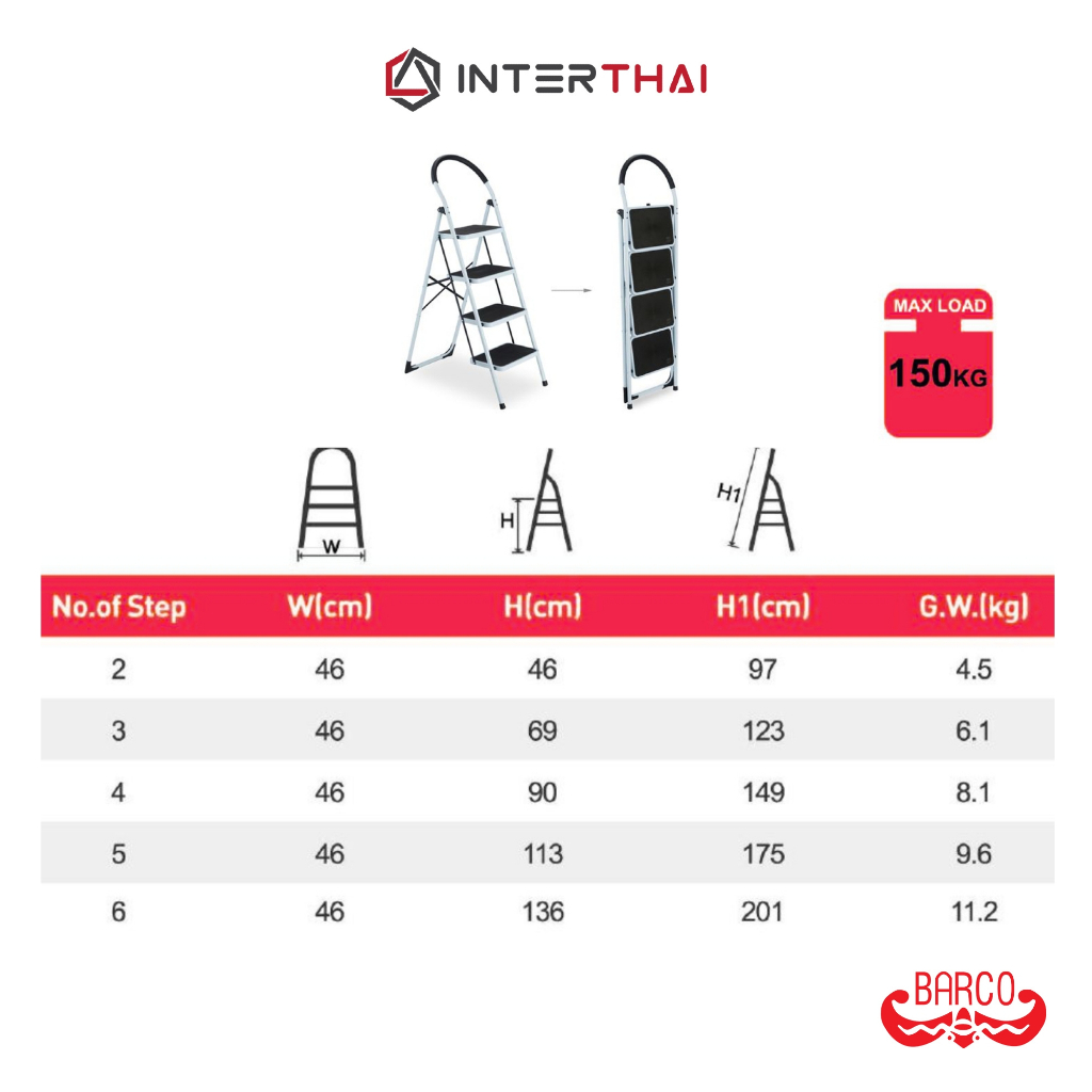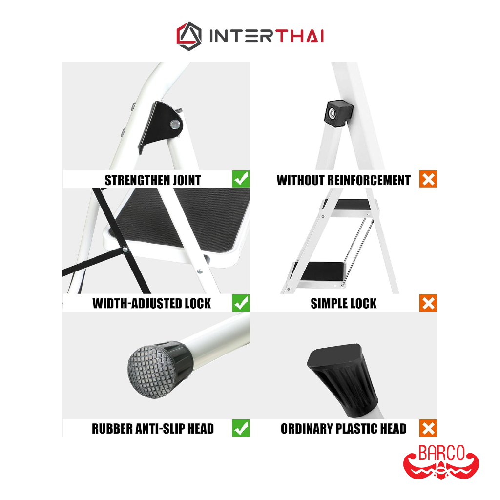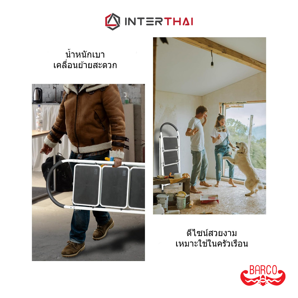 BARCO บันไดเหล็กกล้ามีราวจ ับ รุ่น 4 ขั้น สีขาว