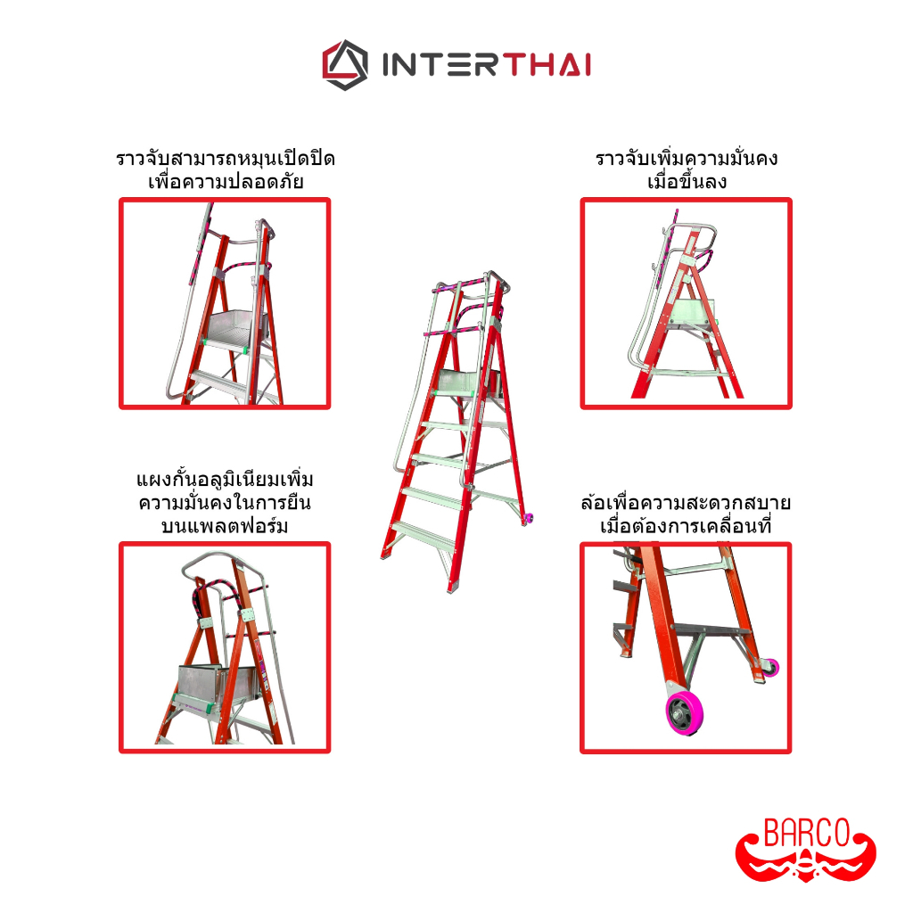 BARCO บันไดแพลตฟอร์มไฟเบอร์กลาสติดล้อ 6 ขั้น 1.72 ม.