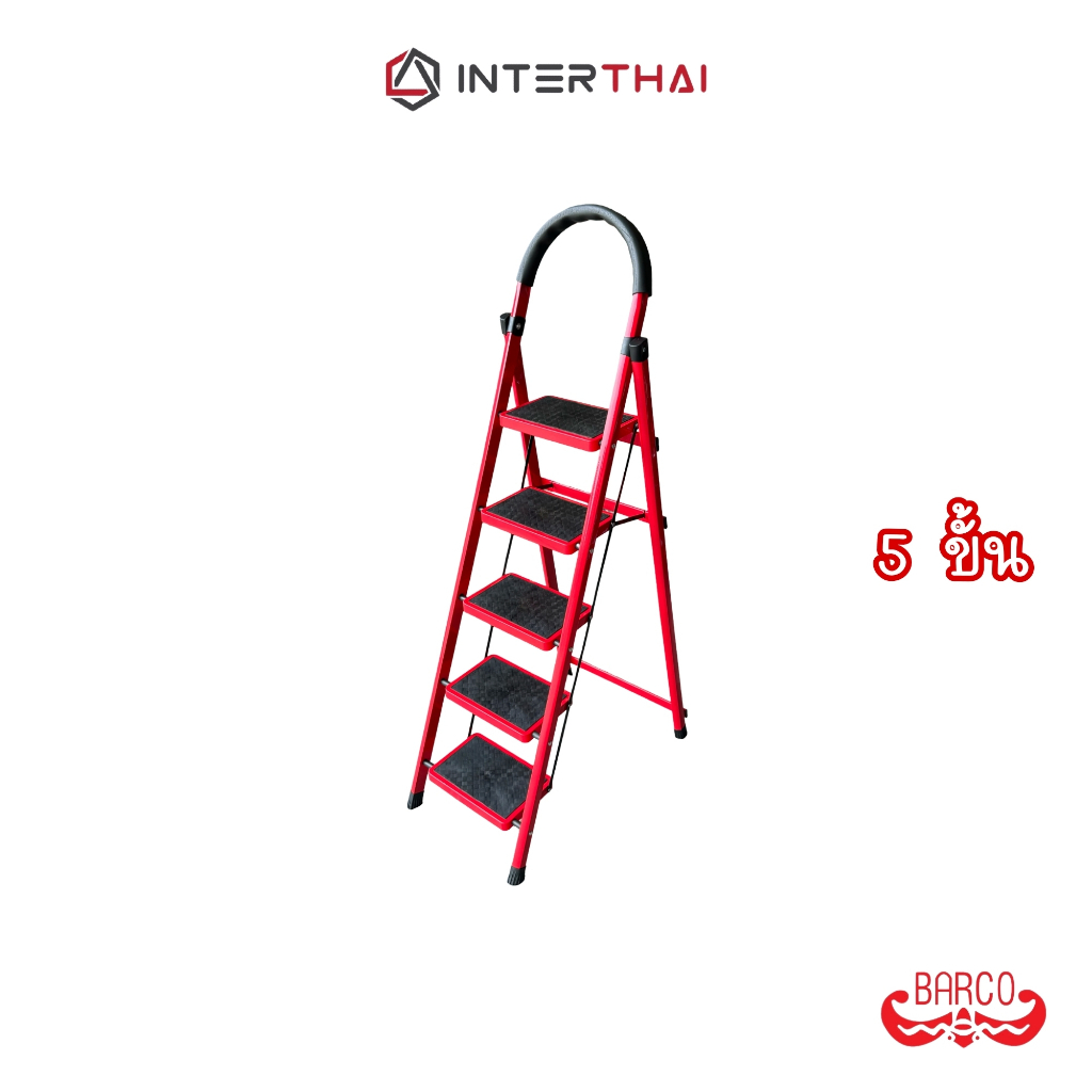 BARCO บันไดเหล็กกล้ามีราวจ ับ รุ่นน้ำหนักเบา 5 ขั้น สีแดง