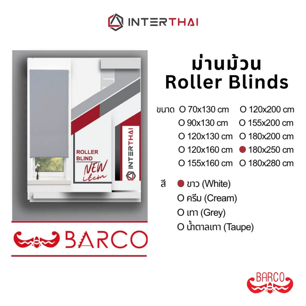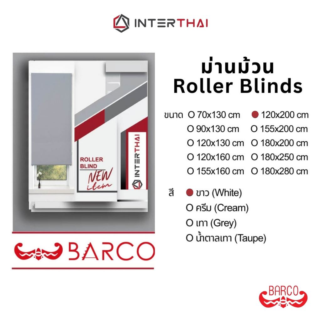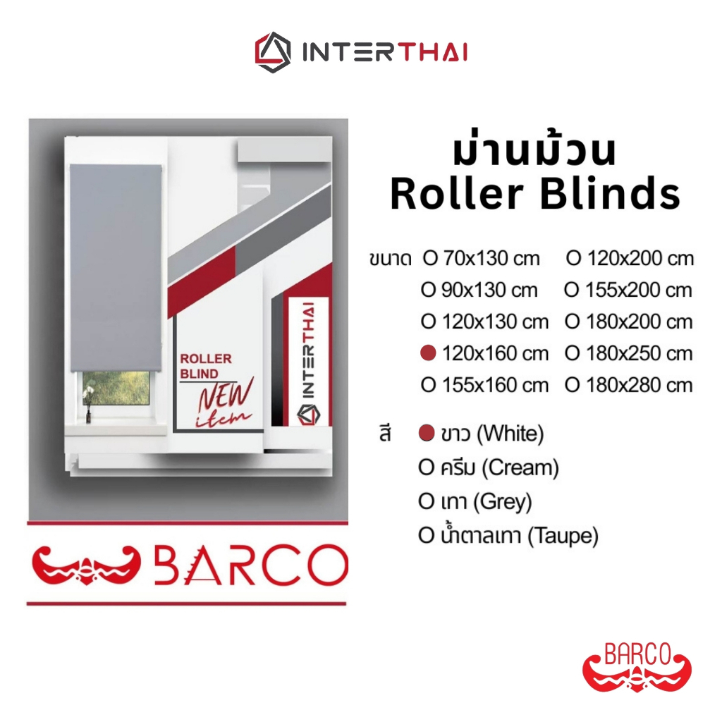 BARCO ม่านม้วน แบบทึบแสง (Blackout) สีขาว