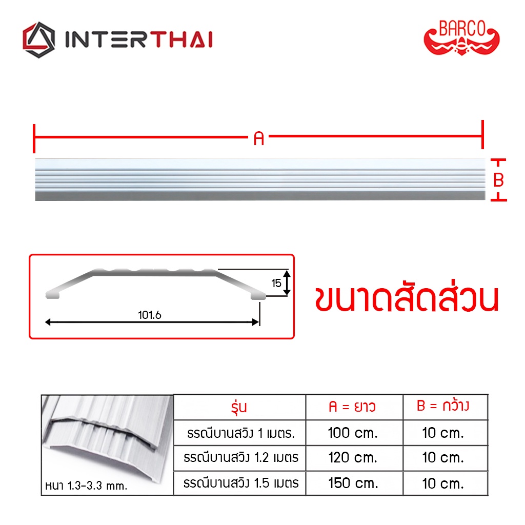 ธรณีประตูสวิง หนา 1.3 - 3.3 มิล ยาว 120 ซม.