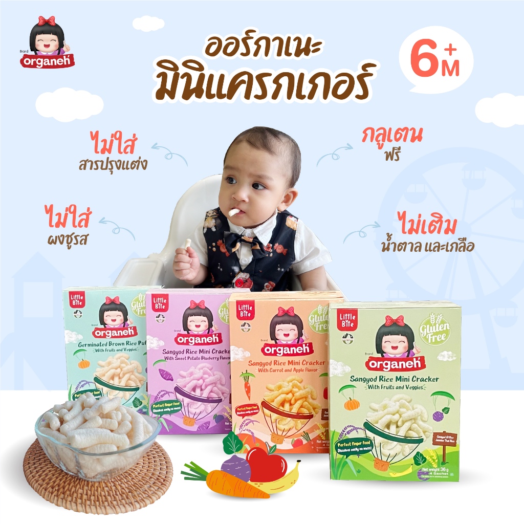ออร์กาเนะ มินิแครกเกอร์ ข้าวสังข์หยด ผสมผักผลไม้รวม สินค้าผลิตใหม่