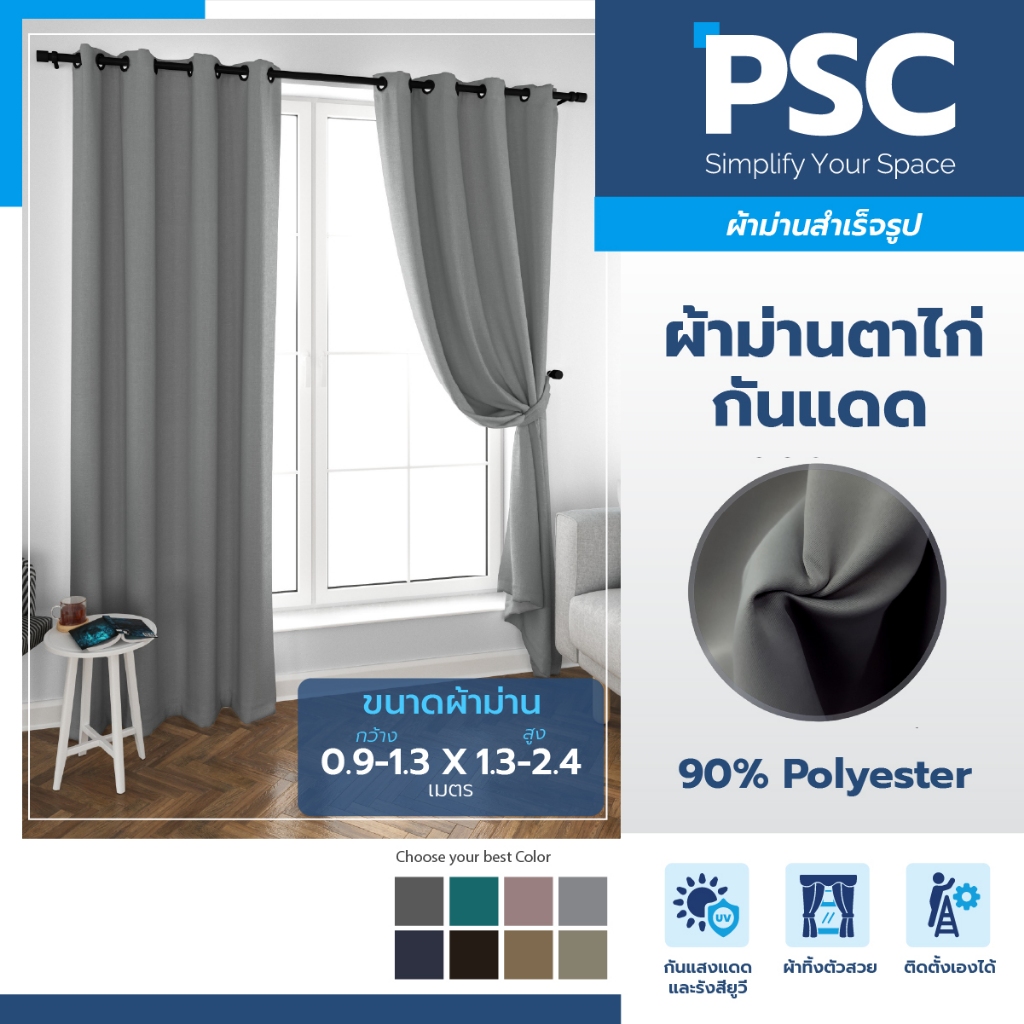 PSC ผ้าม่านสำเร็จรูป กันแสง กว้าง1.30 เมตร สูง 1.5-2.4 เมตร กันแดด