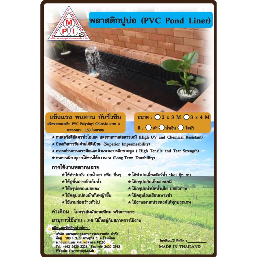 MPI พลาสติกPVC ปูบ่อ หน้า2เมตร หลายสี กันฝน กันแดด คลุมรถ คลุมเห็ด ผ้ายาง ผ้ายางคุมเห็ด/ผ้าใบซุปเปอร์ ขายเป็นเมตร