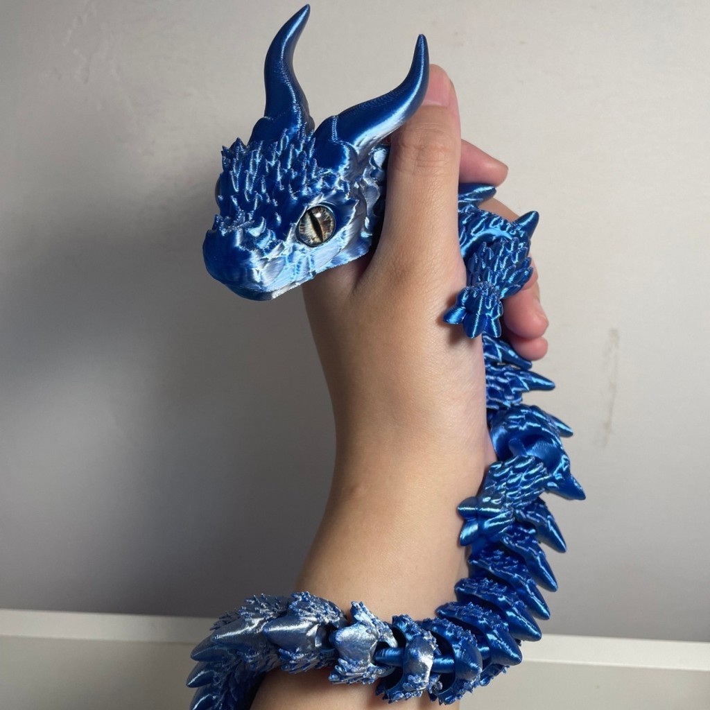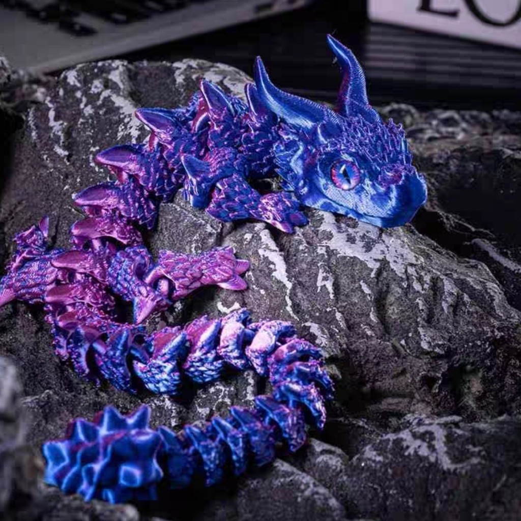 [Meow.sensei] TikTok การพิมพ์3มิติแบบเดียวกันของเล่นสมบัติมังกรเกล็ดมุมตกแต่งสามมิติมังกรและงูจำลองเครื่องประดับเคลื่อนย้ายได้สีน้ำเงินรูปทรงพิเศษ