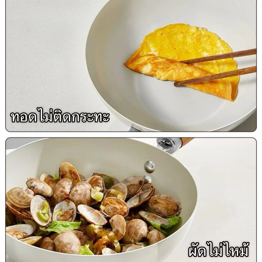 กระทะเคลือบเซรามิก ไม่ติดกระทะ ให้ความร้อนสม่ำเสมอ ทำความสะอาดง่าย มาพร้อมฝาปิด