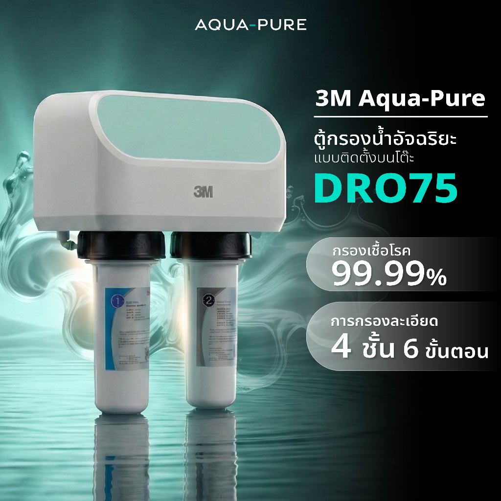 3M Aqua-pure เครื่องกรองน้ำ รุ่น DRO75-AL เครื่องกรองน้ำ ติดตั้งใต้ซิงค์ ระบบ RO ประหยัดพื้นที่ รับประกัน 1 ปี