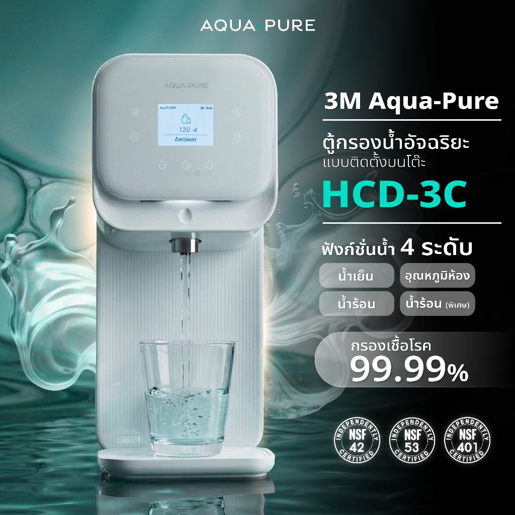 3M Aqua-pure เครื่องกรองน้ำร้อน-เย็น รุ่น HCD-3C Water Dispenser (Tankless) กรองน้ำดื่ม ตู้กรองน้ำ ตู้กดน้ำ กรองน้ำประปา