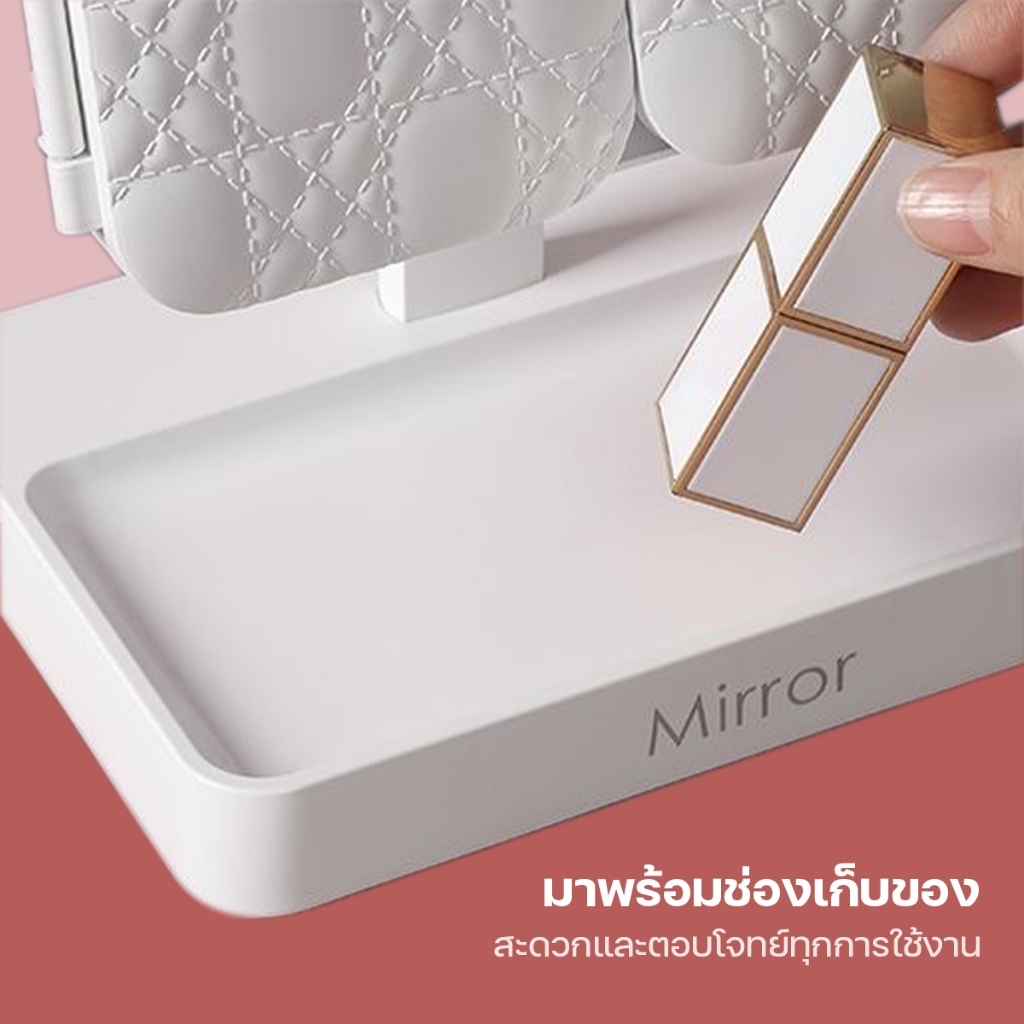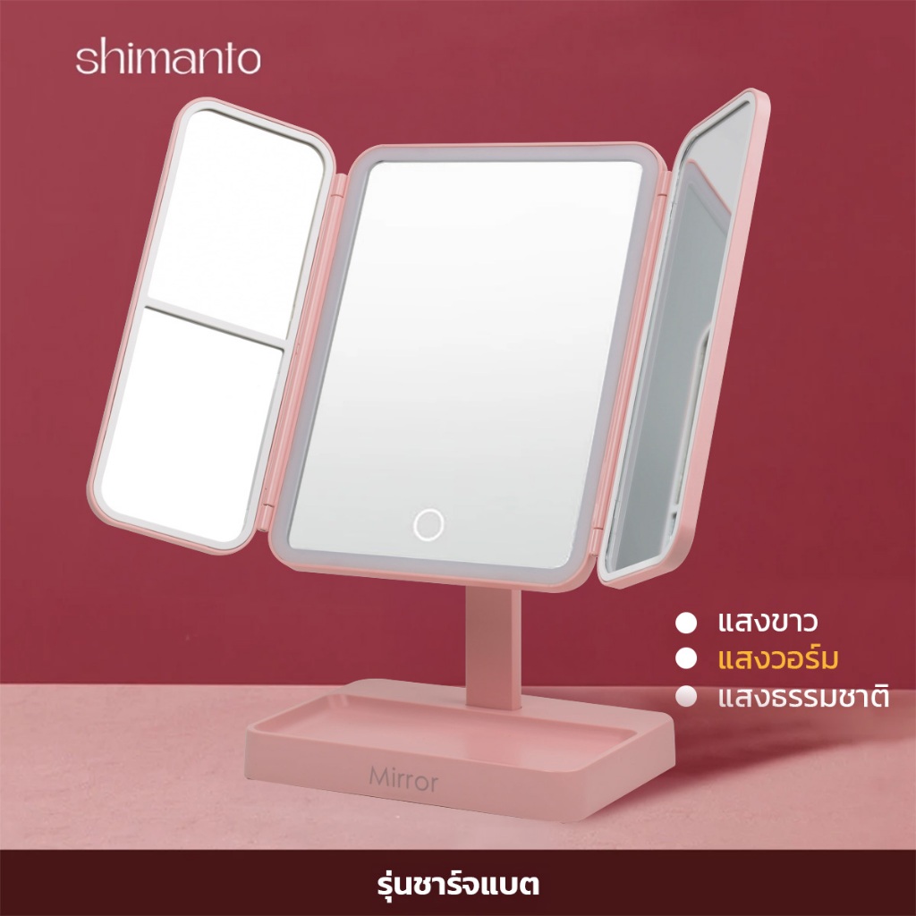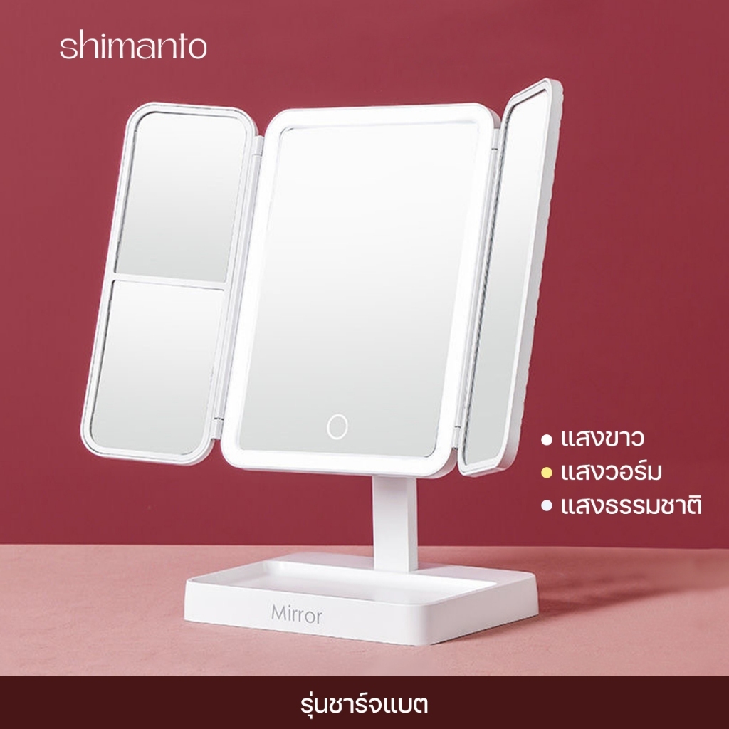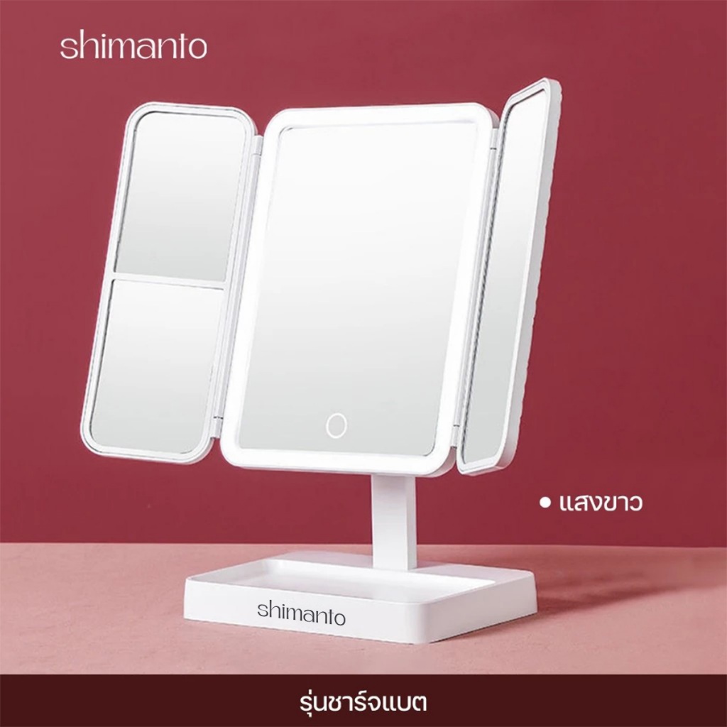 Shimanto กระจกเครื่องสำอาง กระจกพกพาและ ถาดเก็บของ ไฟปรับความสว่างและหมุนปรับองศาได้ ปุ่ม เปิด-ปิดแบบสัมผัส